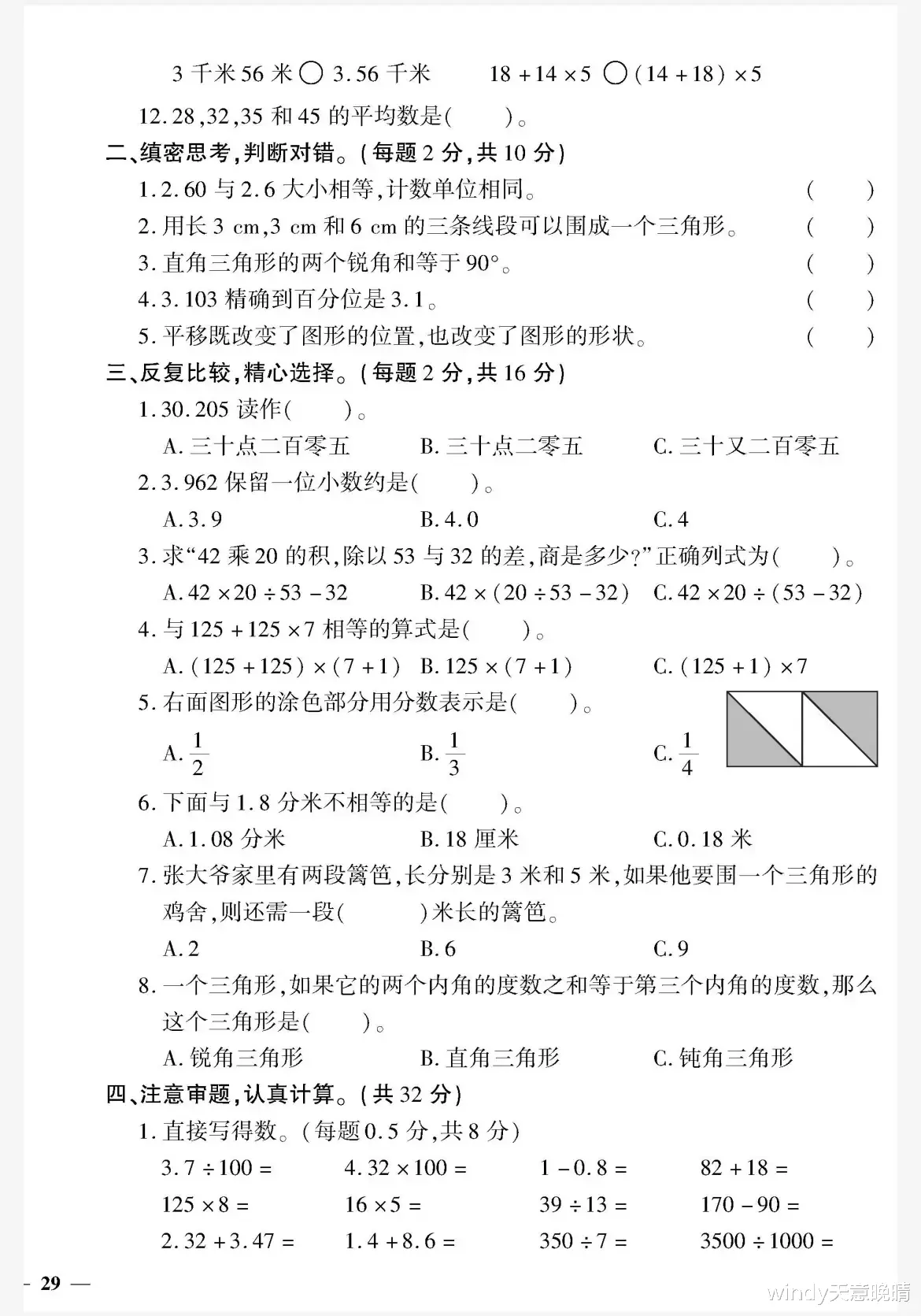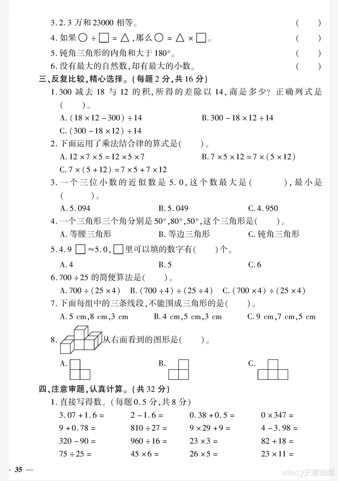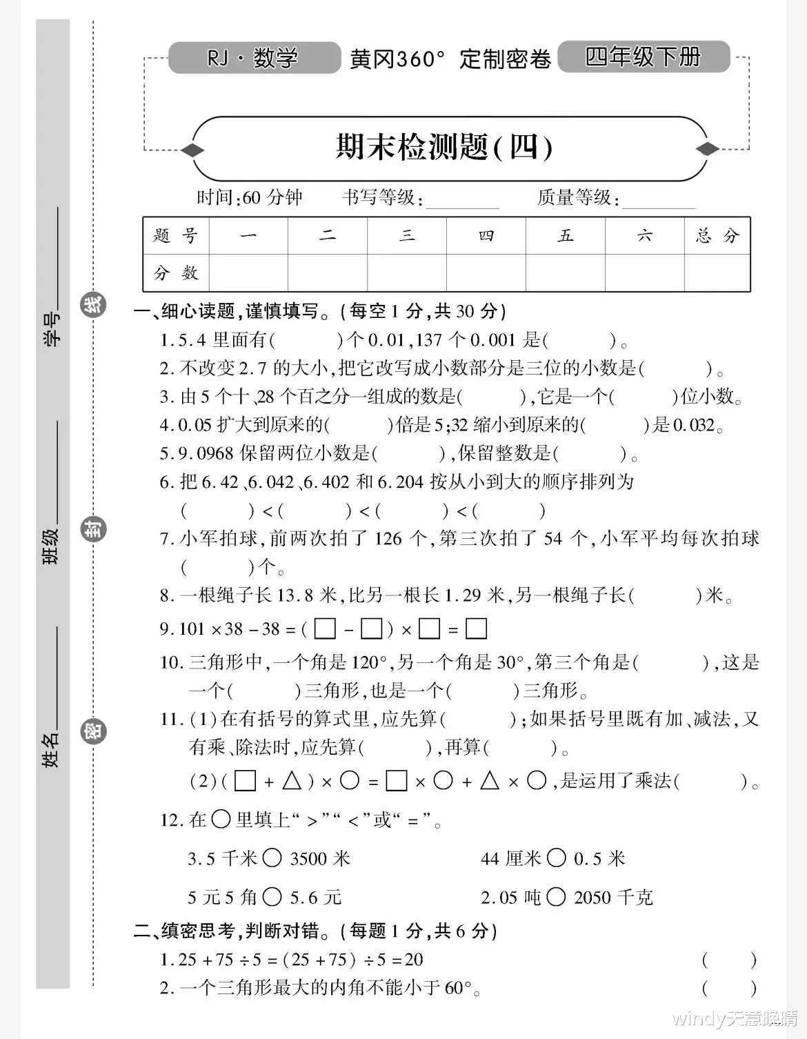 人教版四年级下册数学期末复习的系统方法,帮助孩子高效巩固知识,建议结合课本和错题本进行: