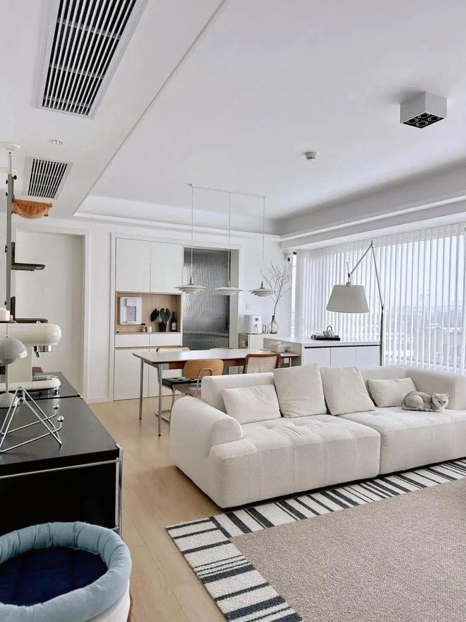 对于客厅面积有限的户型来说,将次卧室与客厅打通后,能有着“大别墅”的即视感。