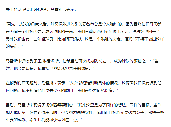 切尔西新帅马雷斯卡力挺恩佐:归队无障碍 队友皆无恶意