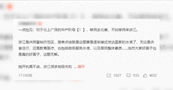 你看去年网上有一个特别炸裂的热搜,就是一个在欧洲生活的浙江老哥发帖说:你们要是没有办法移民到发达国家的话,不如先移民浙江得了。