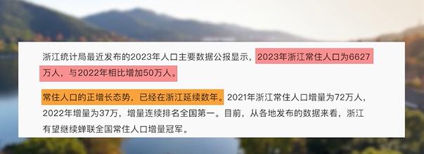2023年浙江常住人口增长了50万,更惊人的是浙江11个地级市人口全部是正增长的,这放眼全国,那就是独一份。
