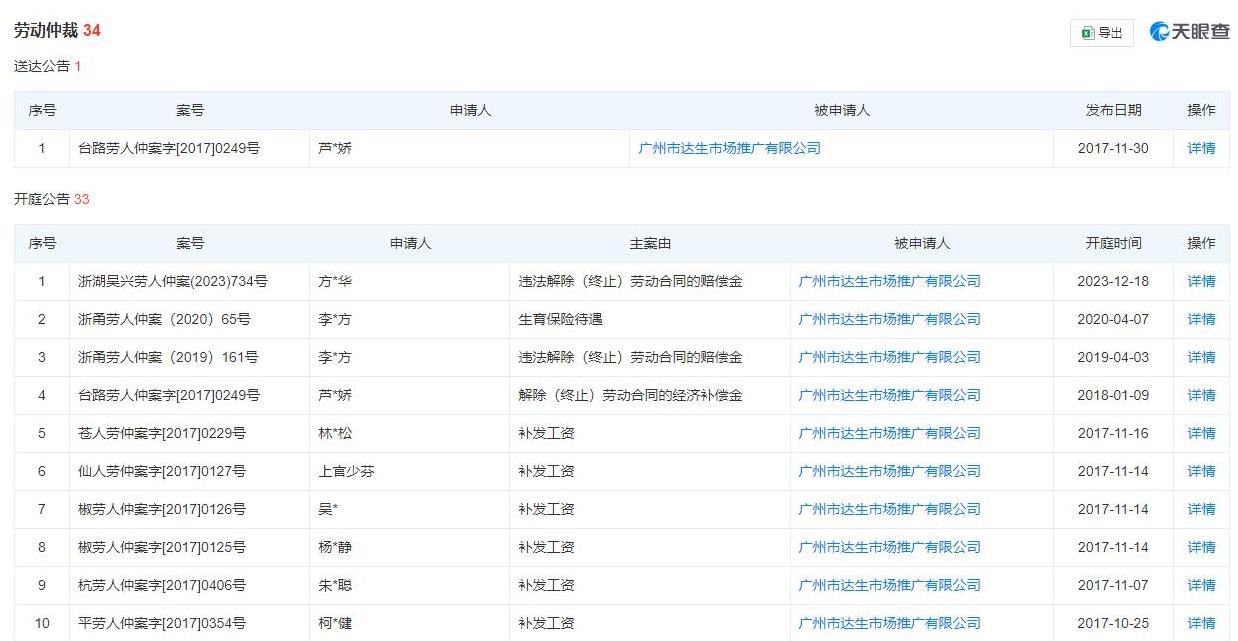 天眼查资料显示,这家公司自2008年成立以来,涉及的司法案件高达253起,劳动仲裁也有34起,几乎全和工资相关。
