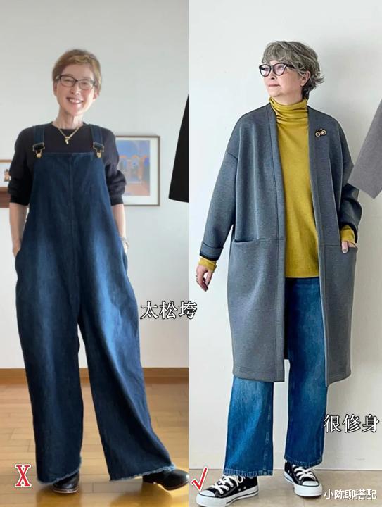当然外套还是可以穿宽松的,但是不能完全裹住体型,一定要有色彩的反差横向收缩,也就是说单件不要宽松,叠穿的时候,利用内搭和外套的色彩反差来制造视觉上的收缩效果。