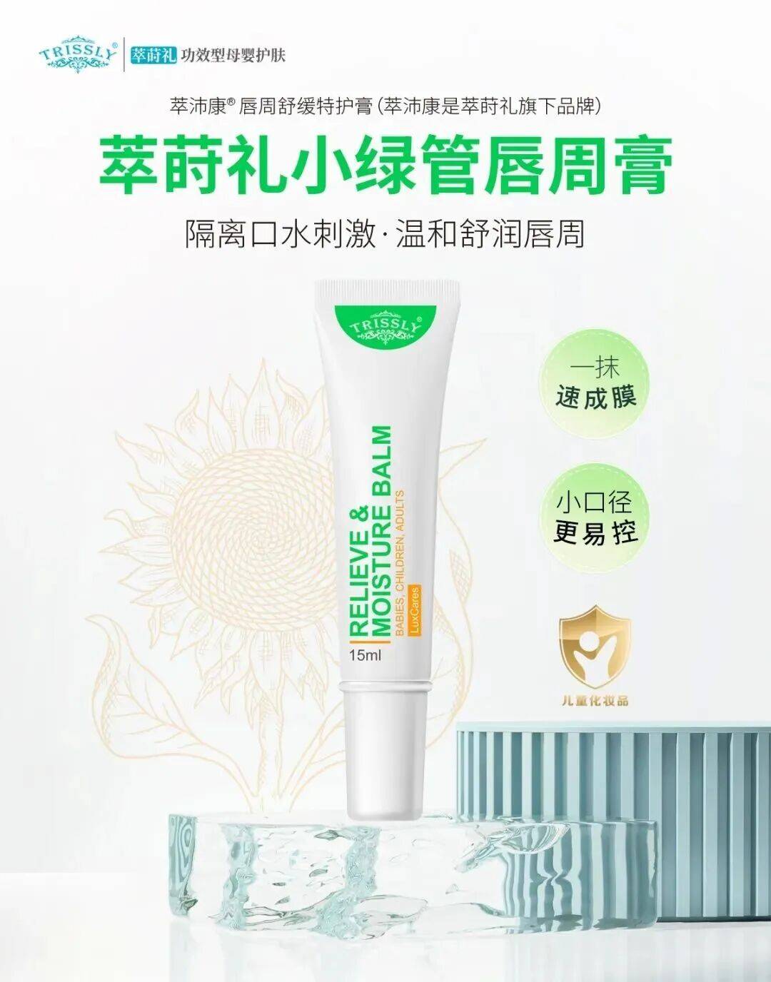 萃莳礼小绿管唇周膏之所以好用,就是能解决宝宝唇周的核心问题,三重守护特别贴心。
