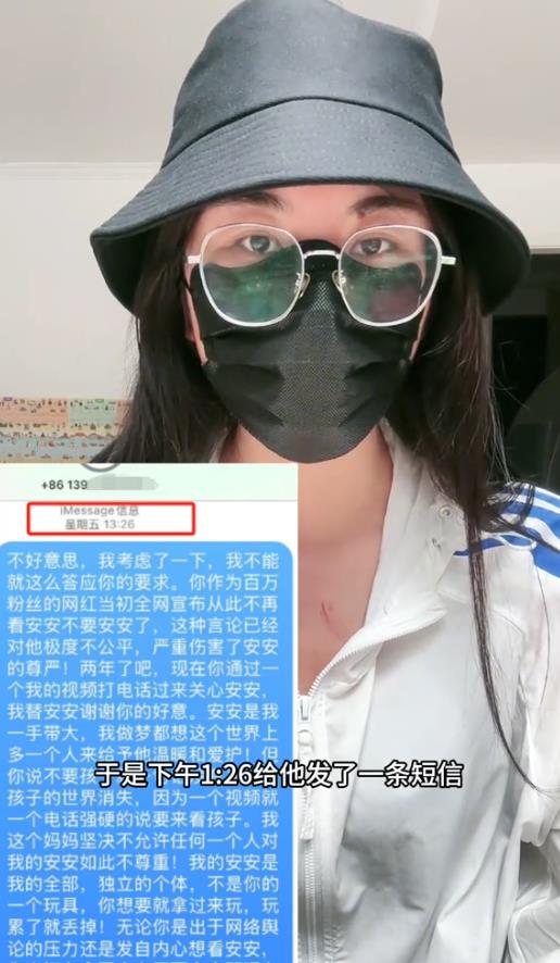 因此,介于这一系列的“光说不做行为”,丹丹仔细思考后又给贾某发了一个短信,她表示,孩子并不是他博取流量的工具,可以让他召之即来,挥之即去,要真想看孩子就再发视频给孩子道歉。