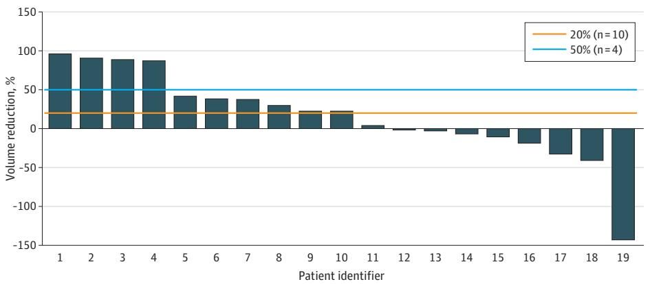 整体来看,病变体积的中位缩减率为22.9%。
