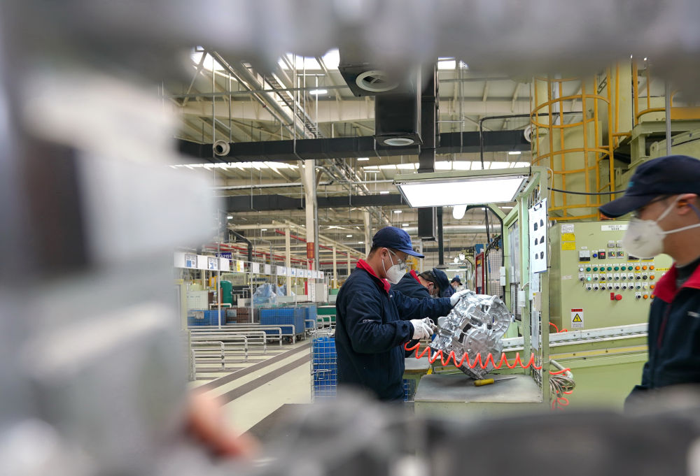 ↑2月14日,工人在唐山市丰润区一家汽车变速箱制造企业的生产线上工作。新华社记者 杨世尧 摄