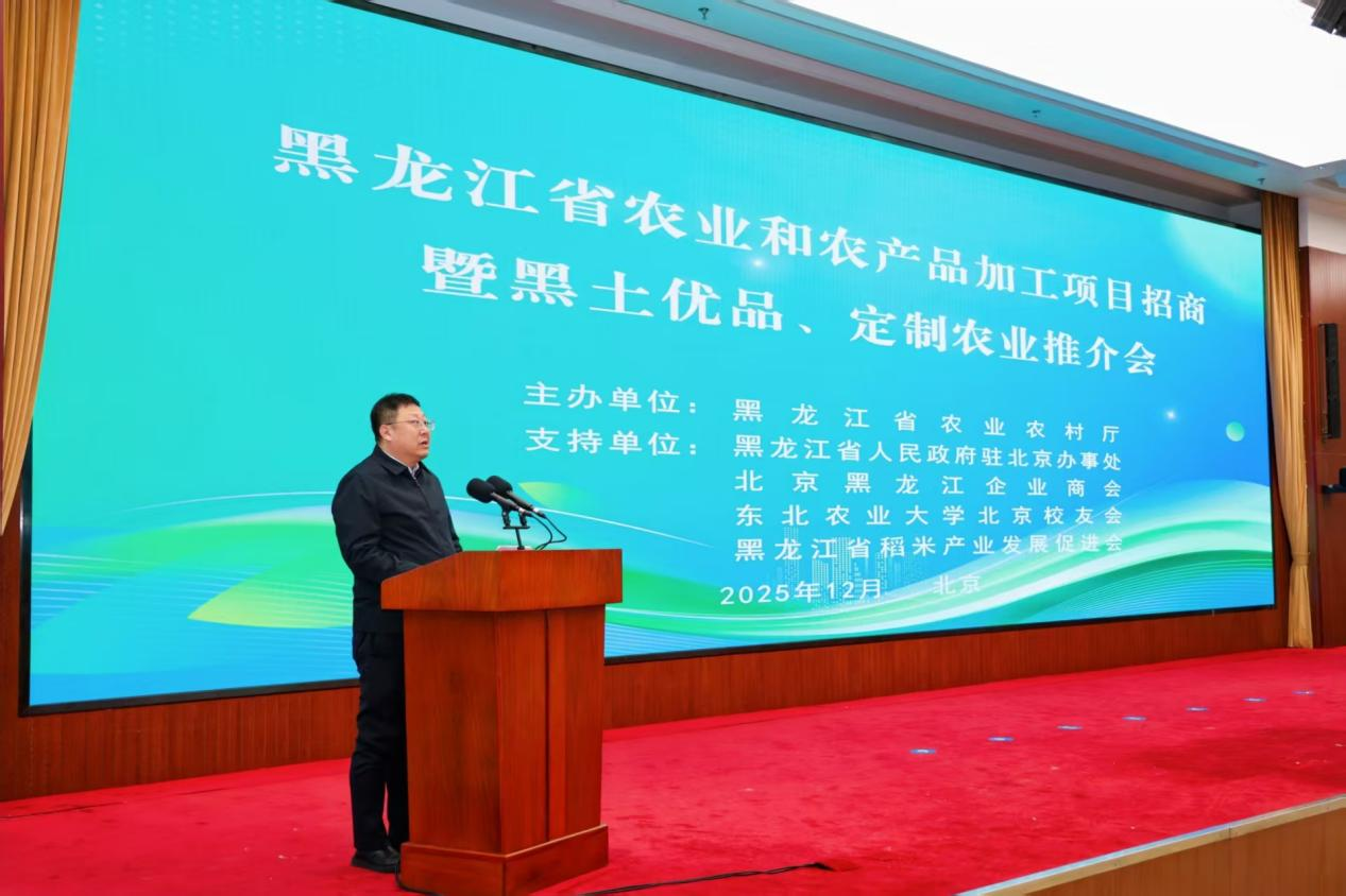 为持续贯彻落实习近平总书记关于“要培育一批叫得响、信得过的绿色食品品牌,推动黑龙江由大粮仓变成绿色粮仓、绿色菜园、绿色厨房”重要指示精神和省委、省政府关于打造“黑土优品”优质农业品牌等部署要求,推动定制农业做大做强,加强农业产业合作交流,促进京、津、冀企业资本、产业资源与龙江禀赋资源深入对接,吸引京、津、冀企业到我省投资发展农产品精深加工业,实现产业链、价值链向中高端延伸,把“更优、更绿、更香、更安全”的优质农产品推向全国,省农业农村厅携手省政府驻北京办事处、北京黑龙江企业商会、东北农业大学北京校友会、黑龙江省稻米产业发展促进会,邀请90余家京、津、冀知名农产品加工企业、采购商、经销商及投资机构代表,召开黑龙江省农业和农产品加工项目招商暨“黑土优品”、定制农业推介会,哈尔滨市、大庆市、绥化市农业农村局,绥滨县人民政府,森工森林食品集团、和粮农业、大庆老街基、长水河粮油等8个单位,分别围绕现代农业、乳业、鲜食玉米、鹅产业、“定制农业”、粮油加工等项目进行推介。北京新发地蔬菜市场有限公司副总经理丑天民,北京荣发浩达供应链管理有限公司总经理董惠,北京华参生物科技有限公司总经理张国利等参加推介会的企业负责人纷纷表示,黑龙江省农业资源丰富、产业基础扎实、营商环境优良、发展潜力巨大,黑龙江“黑土优品”及定制农产品高端、优质、安全、放心,期望与黑龙江持续深化合作、实现共赢发展。