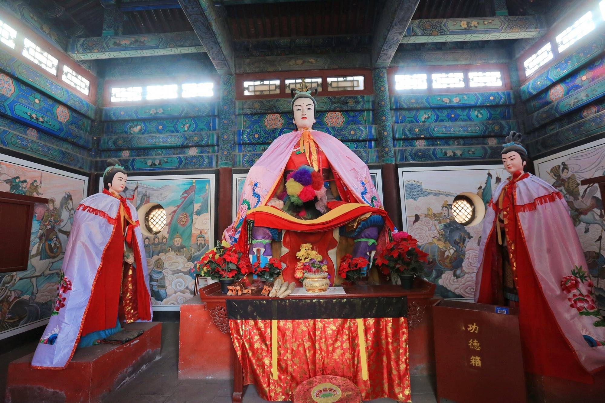 门楼内供奉着平阳公主的彩塑像,身着战服,英姿飒爽,不苟言笑的表情确实有将军不怒自威的气势。史书上记载平阳公主能骑善射,曾亲自带领队伍与敌军作战,不畏强敌,表现异常出色。