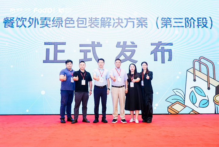 8月1日 ,在备受瞩目的“中国餐包创新发展大会”期间,《餐饮外卖绿色包装解决方案(第三阶段)》正式发布。中国包装联合会副秘书长胡正阳、中国饭店协会外卖专业委员会执行理事长(和家集团董事长)金龙宇、美团青山计划高级经理周焱、中国出口包装研究所所长助理刘天航、左庭右院餐饮外卖部总监顾文龙、浙江庞度环保科技股份有限公司国内销售总经理方静等嘉宾共同出席了发布仪式,标志着外卖包装绿色发展进入下一新阶段。