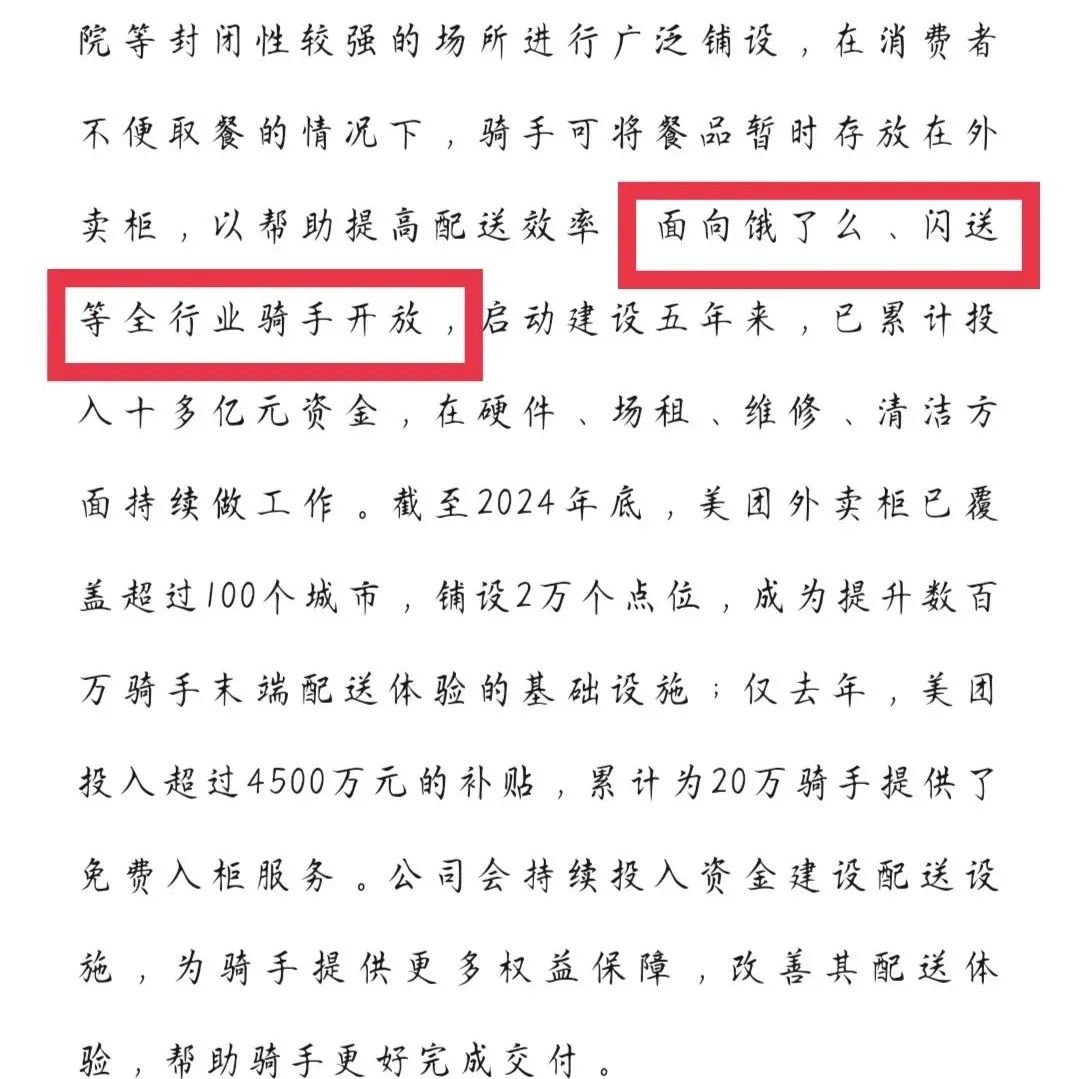还有人说“美团外卖柜禁用京东骑手”,美团直接在线辟谣,柜子24小时对全行业开放。