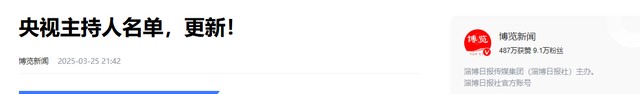 信息来源:博览新闻——央视主持人名单,更新!