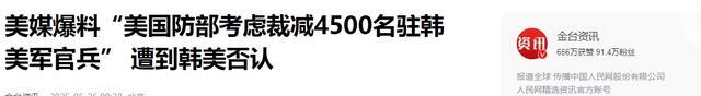 2、金台资讯《美媒爆料“美国防部考虑裁减4500名驻韩美军官兵” 遭到韩美否认》