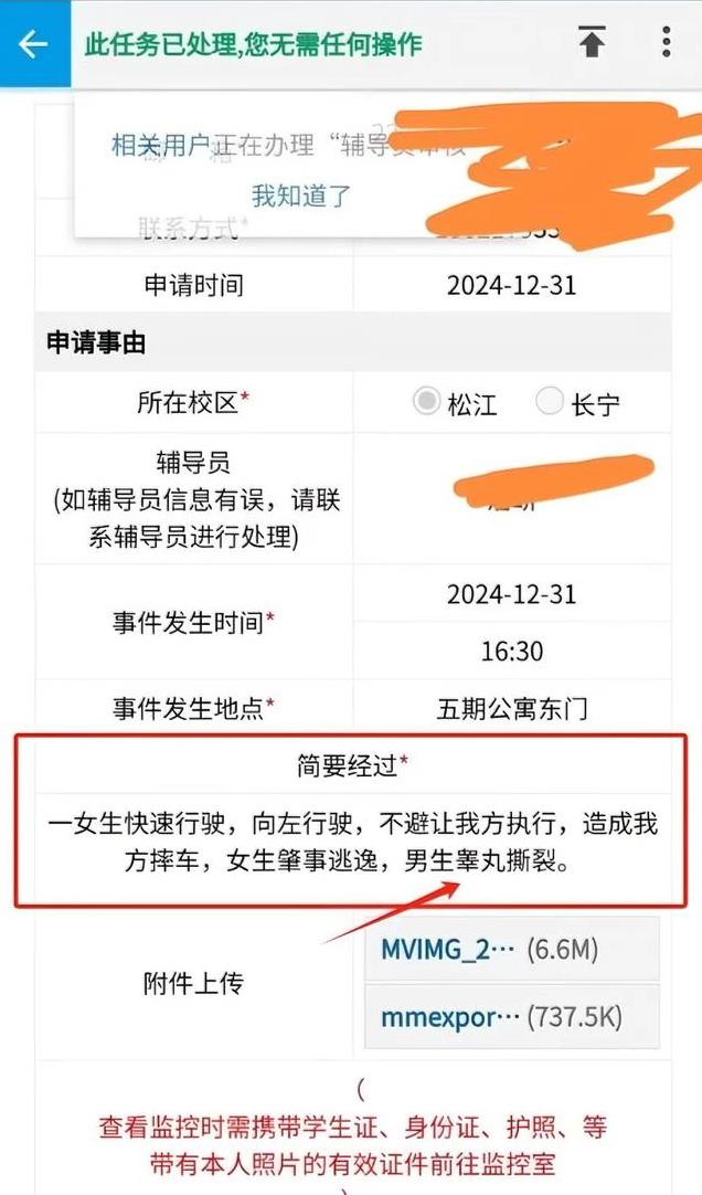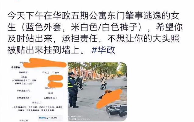 然后,就是最近轰动校园的12月31日电驴事件了。这绝对是今年华政最劲爆的“大戏”!一位女同学骑着电驴,左转的时候撞倒了一个男生,结果男生下体……哎,此处省略一万字,总之伤得不轻。更让人气愤的是,这位女同学竟然肇事逃逸!这年头,骑个电驴都能出这么大的事儿,真是让人防不胜防啊! 网上还流传着监控视频截图,6.6M和737.5K的图片,看起来证据确凿。更精彩的是,据说还有“亲友团”出来为肇事者辩护,这剧情,简直比狗血电视剧还精彩!学校至今还没啥回应,这沉默,更让大家心里七上八下。