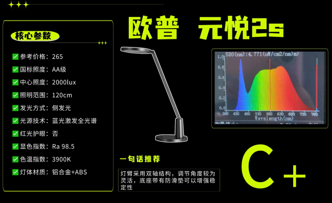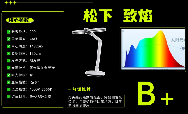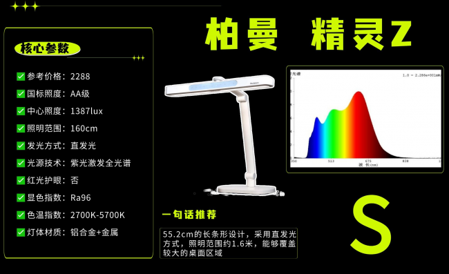 一句话推荐:拥有三分钟“红光”增益,为眼睛输送更多的“营养”;同时拥有OCLT光透镜技术,打造出99.6%还原太阳光的高品质光源,达到护眼更养眼的效果。