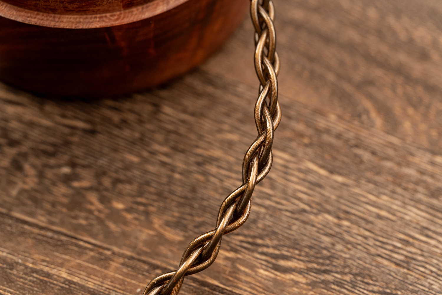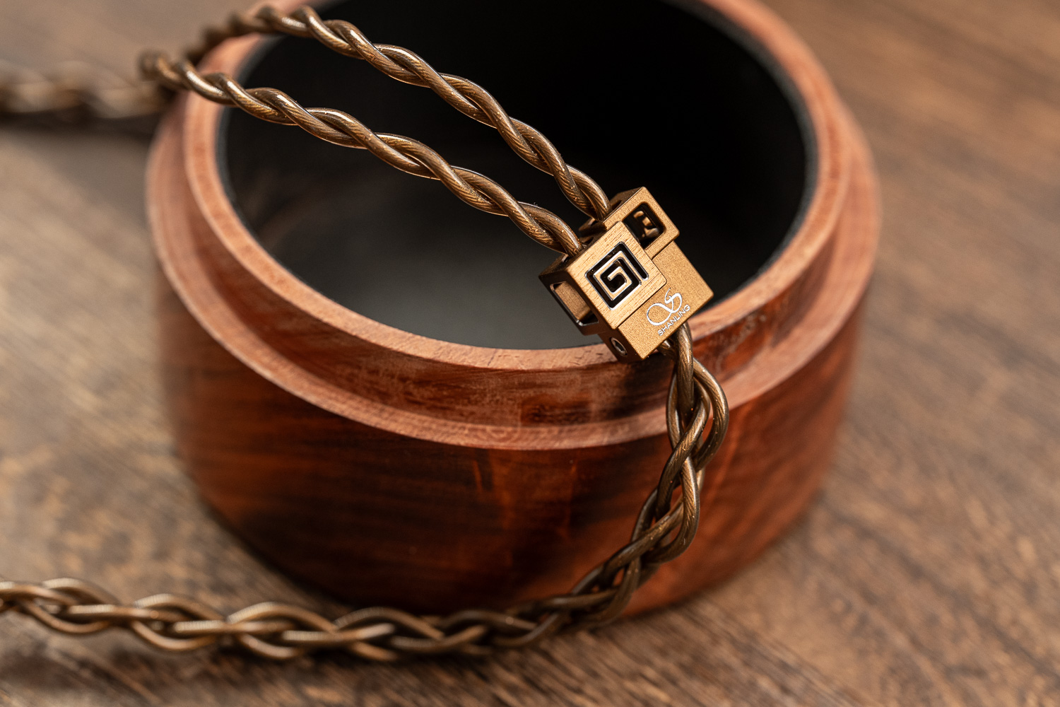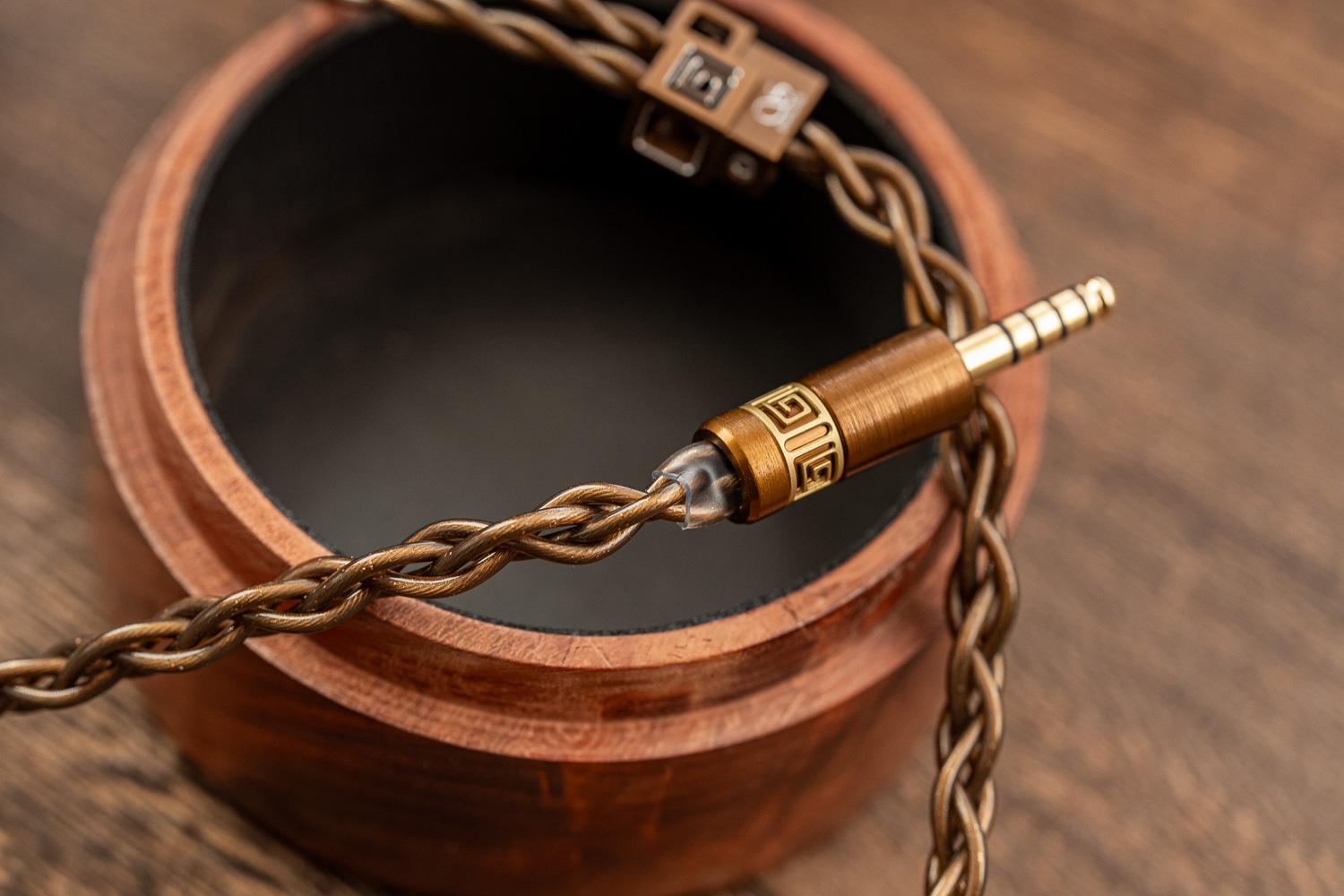 外观的选材设计和配色上,山灵还是下了功夫的、从宏观到细节都呈现出了国风质感,线材的内部是一种深琥珀色,而金属件的部分都采用了同色系的拉丝工艺,分线器与插头部分的纹路也非常具备中式美学的观感,且本身Majestic系列都属于木材工艺,EL1000能够在视觉层面起到非常协调的搭配作用,尤其是适合标准版、金丝楠木版和黄金樟版,美感协调度浑然天成。