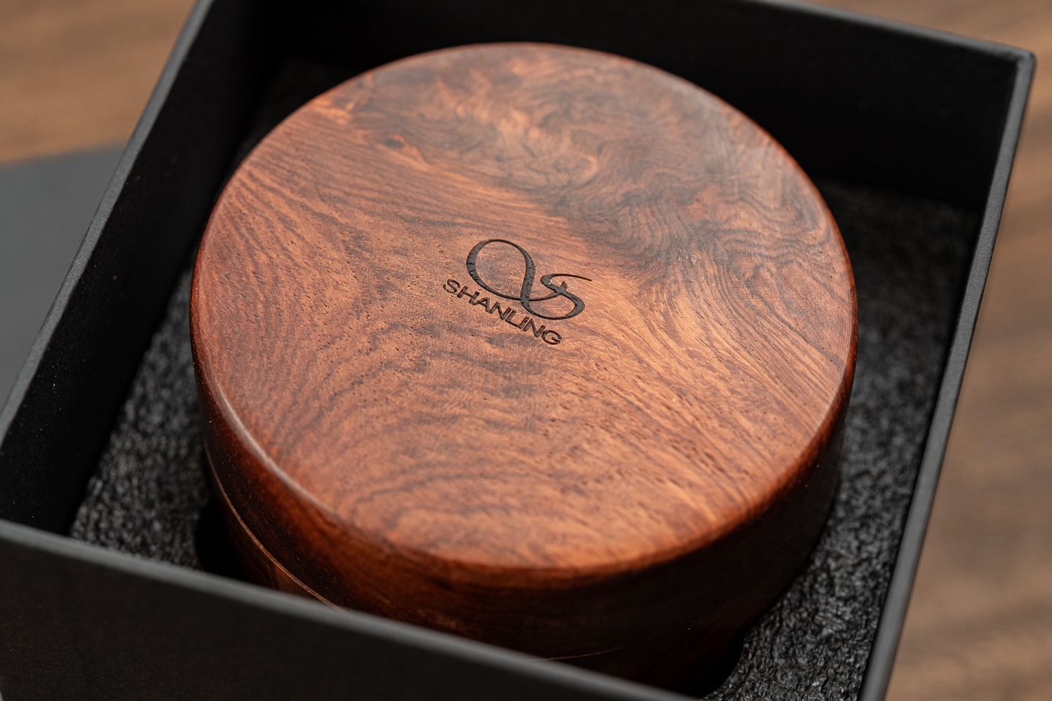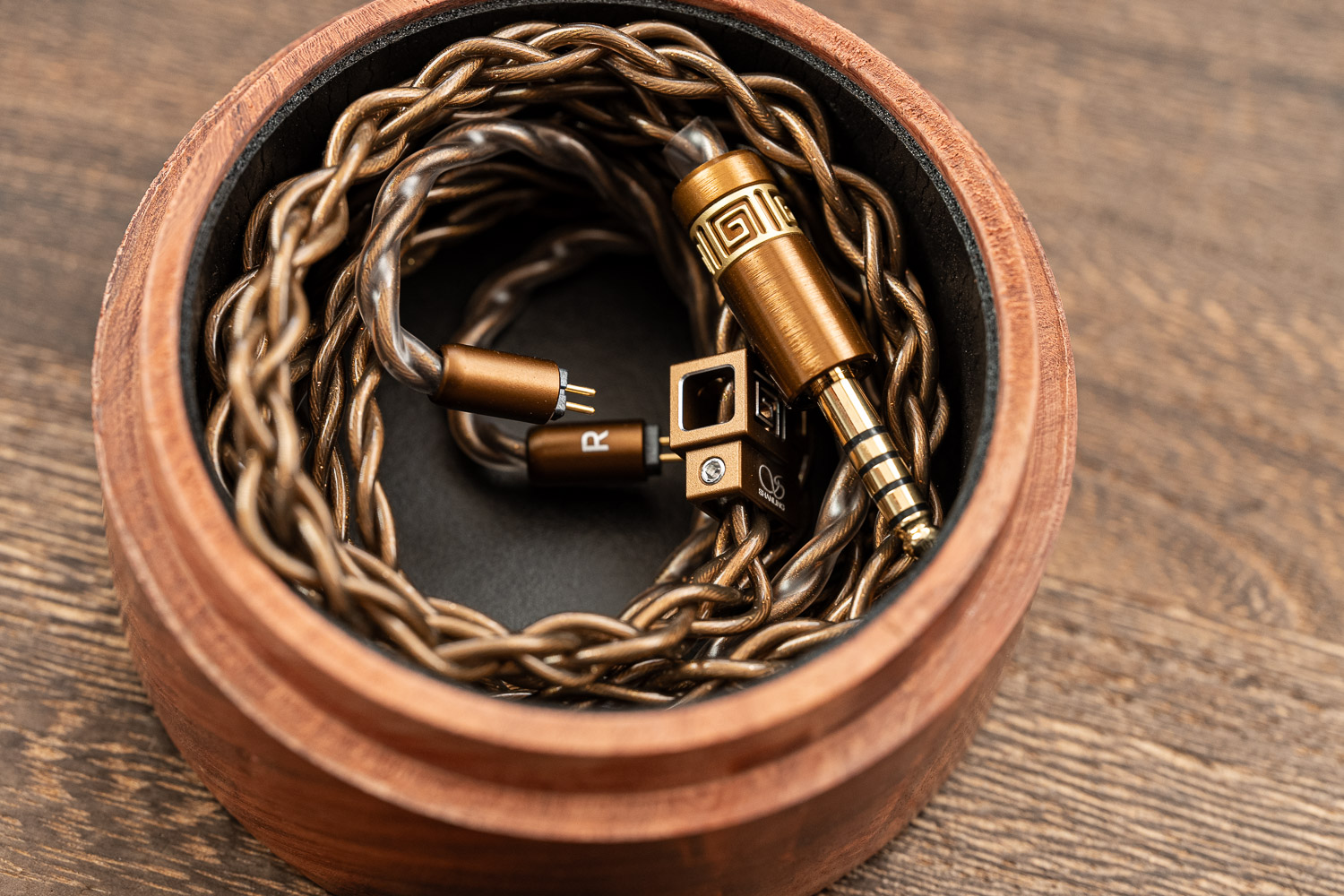 外包装比较朴素,不过一打开就知道这个盒子不简单了,黄花梨的材料就是会感觉要显得比常规的木质收纳盒更上档次点,触感、光泽度都很显贵气。虽然采用了复杂的结构和22.6AWG的超粗单股线径,但外层披覆了一层进口的PVC材料,兼顾坚韧与柔软度,所以有着很好的易收纳性,可以用比较小的半径收纳进原装盒子里,包括连Majestic一起放入也毫无压力。