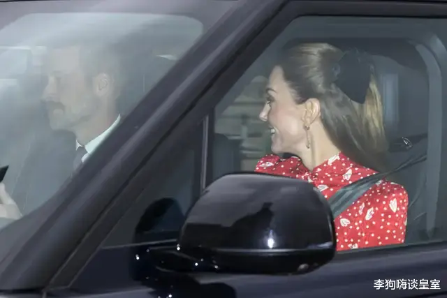 夏洛特公主则穿着一件酒红色连衣裙,同样采用了半扎发的造型,并搭配了与服装色调相协调的红色发带。
