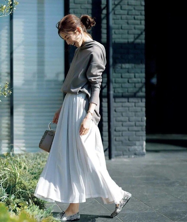 卫衣与半裙的搭配,可谓是当下最流行的组合之一。在这个季节里,我们可以选择一件舒适的卫衣,搭配上一条优雅的半裙,既展现了女性的柔美,又不失休闲的感觉, 如果你选择纯色款式的卫衣,那么可以搭配印花半裙;如果你选择印花款式的卫衣,那么可以搭配纯色半裙,充分的利用颜色上的反差感,避免造型单一和无趣。