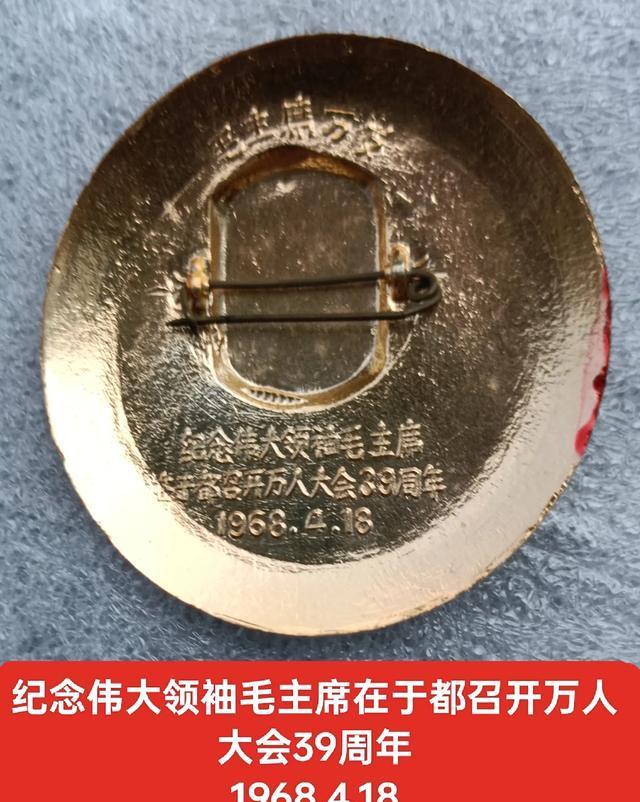 纪念章背面刻字:缅怀伟大领袖毛泽东于都万人大会39周年纪念