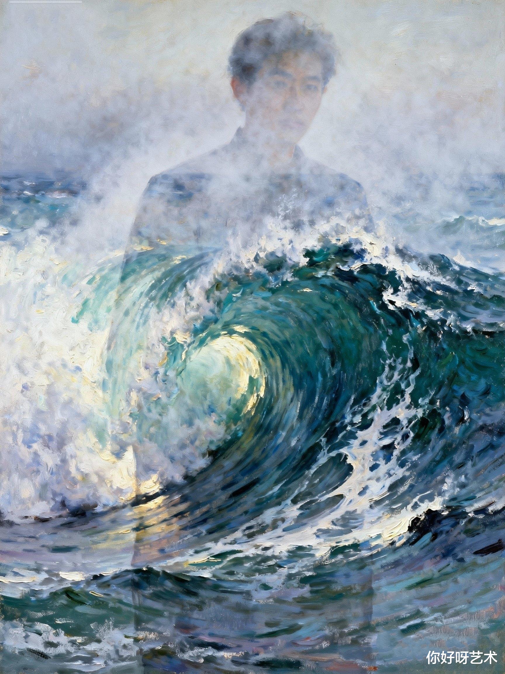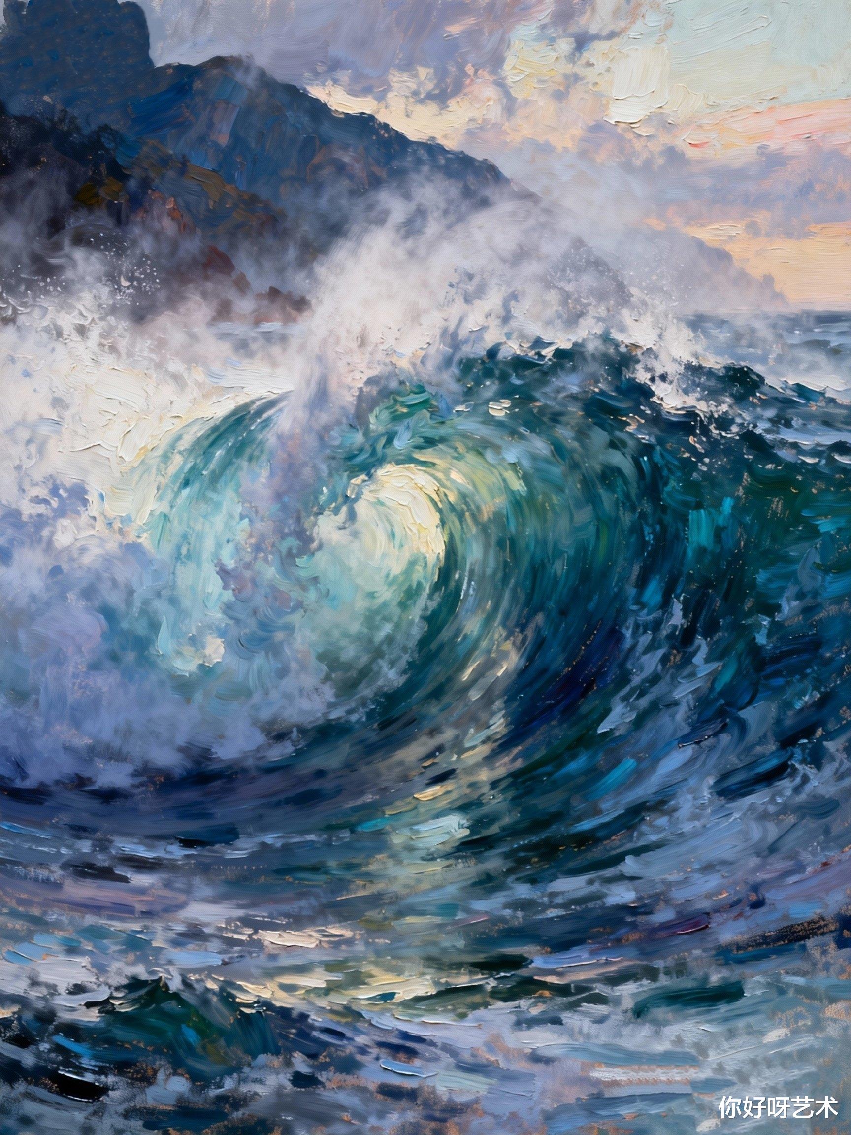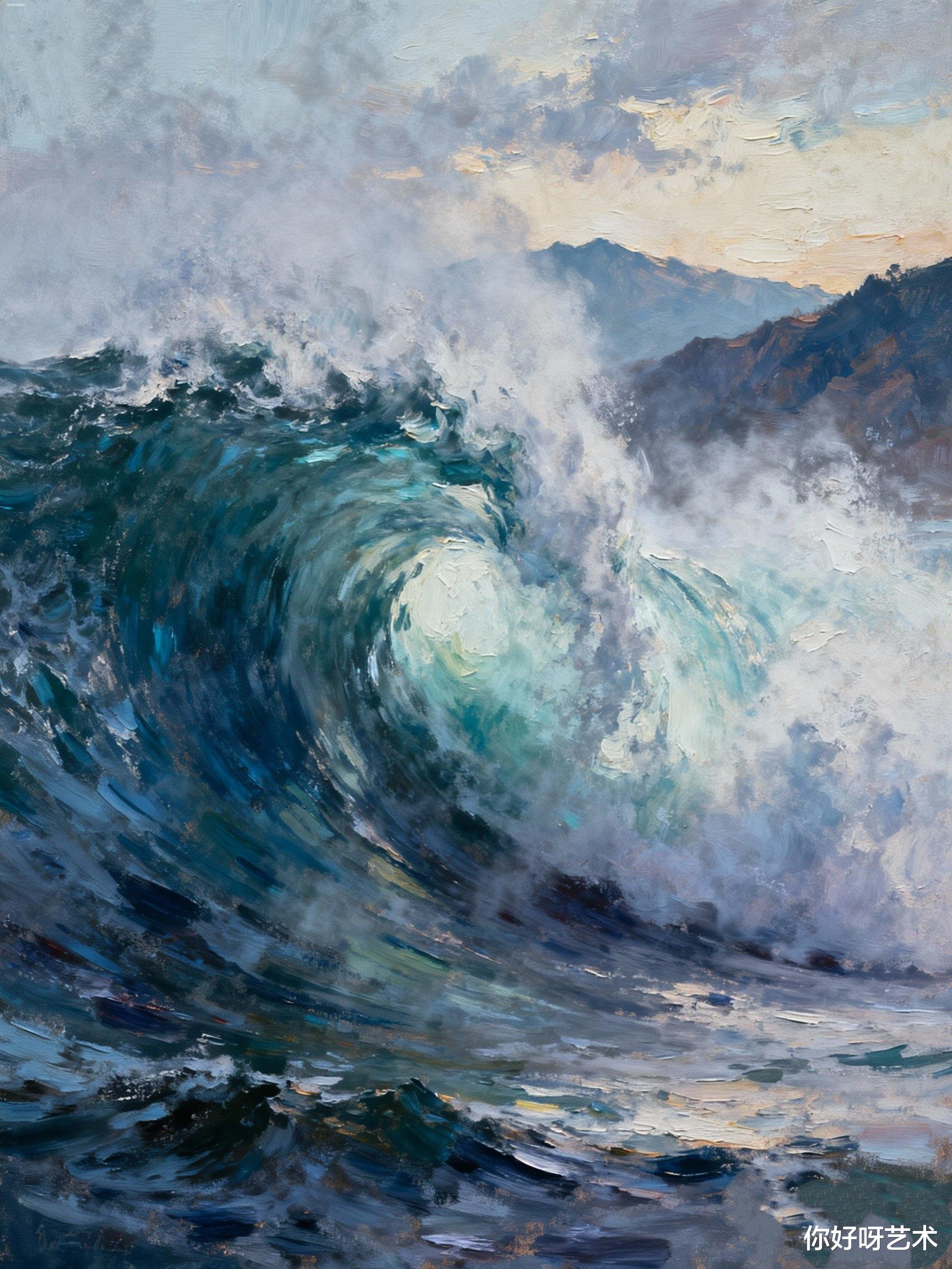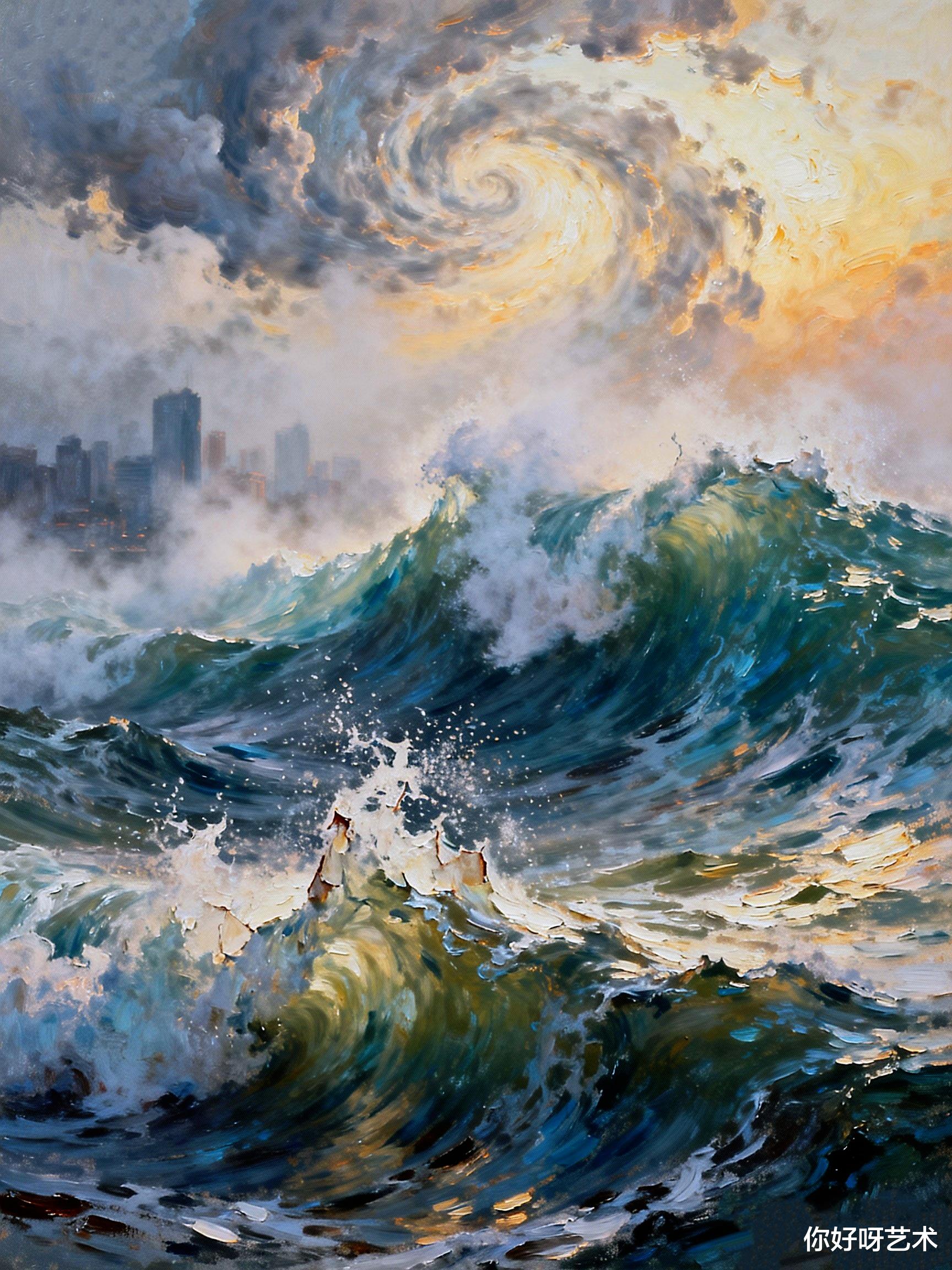 当目光落在那幅名为《海啸》的油画上时,仿佛瞬间被卷入了一场惊心动魄的自然浩劫之中。