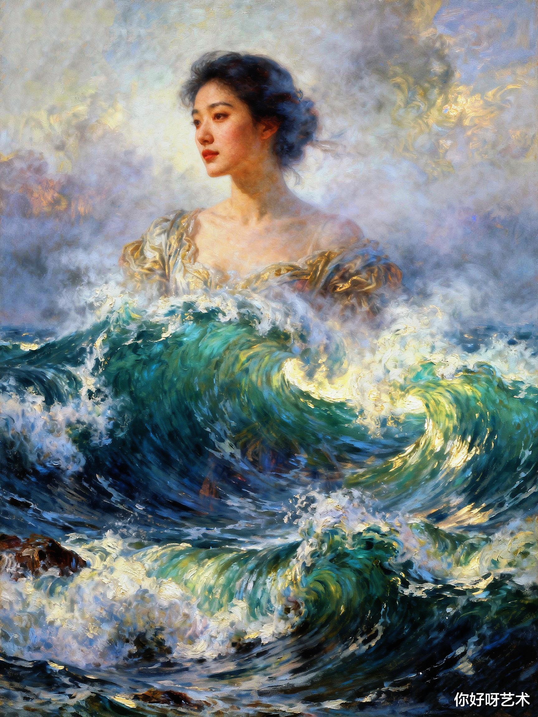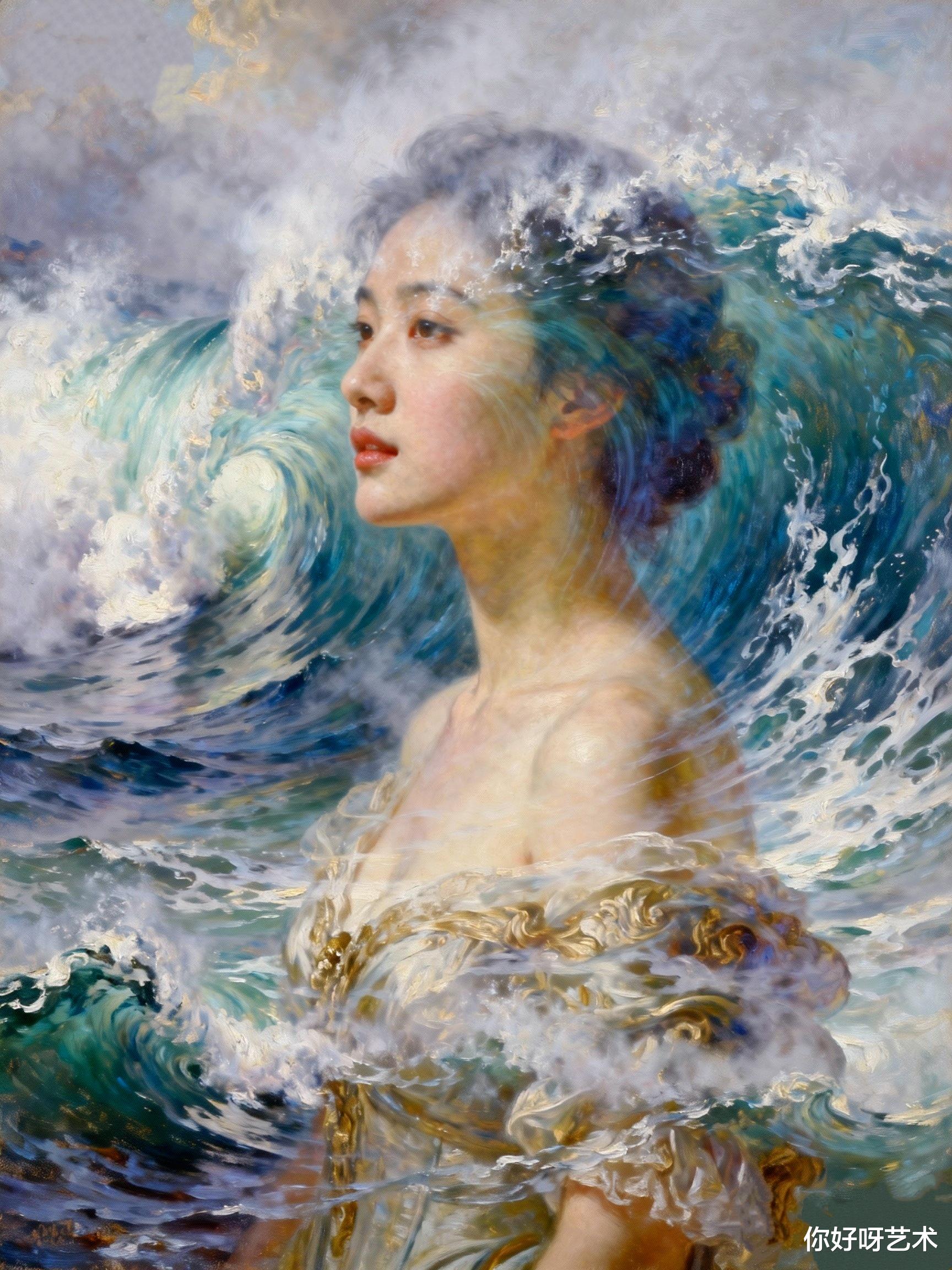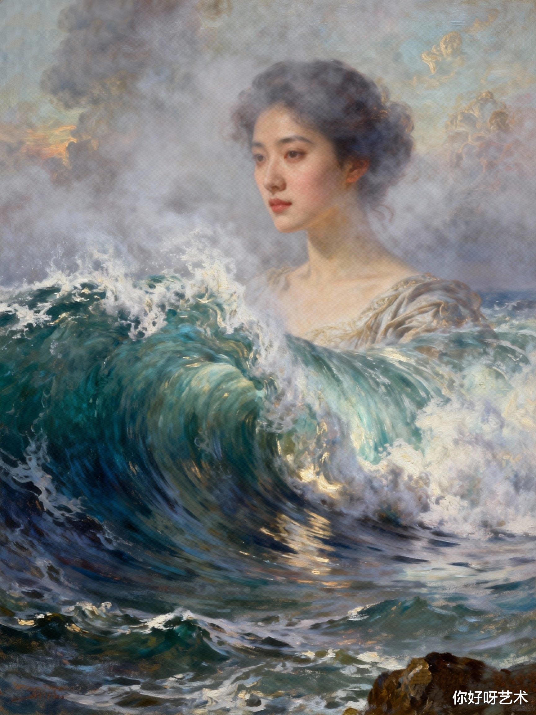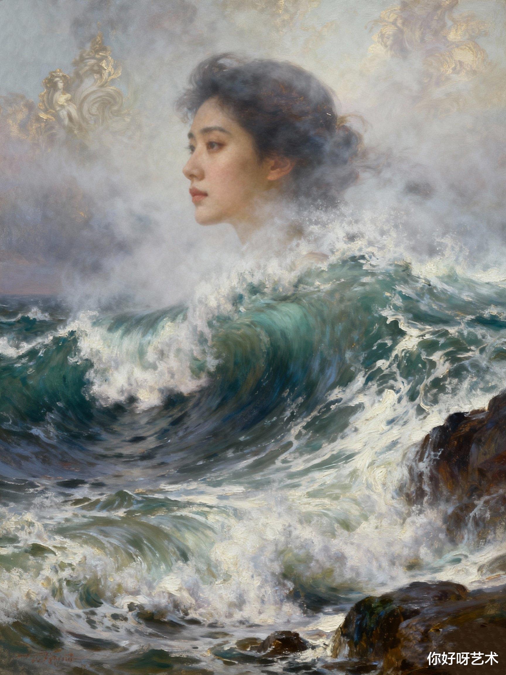 当目光落在那幅名为《海啸》的油画上时,仿佛瞬间被卷入了一场惊心动魄的自然浩劫之中。