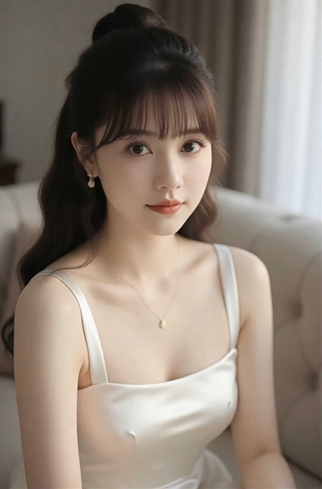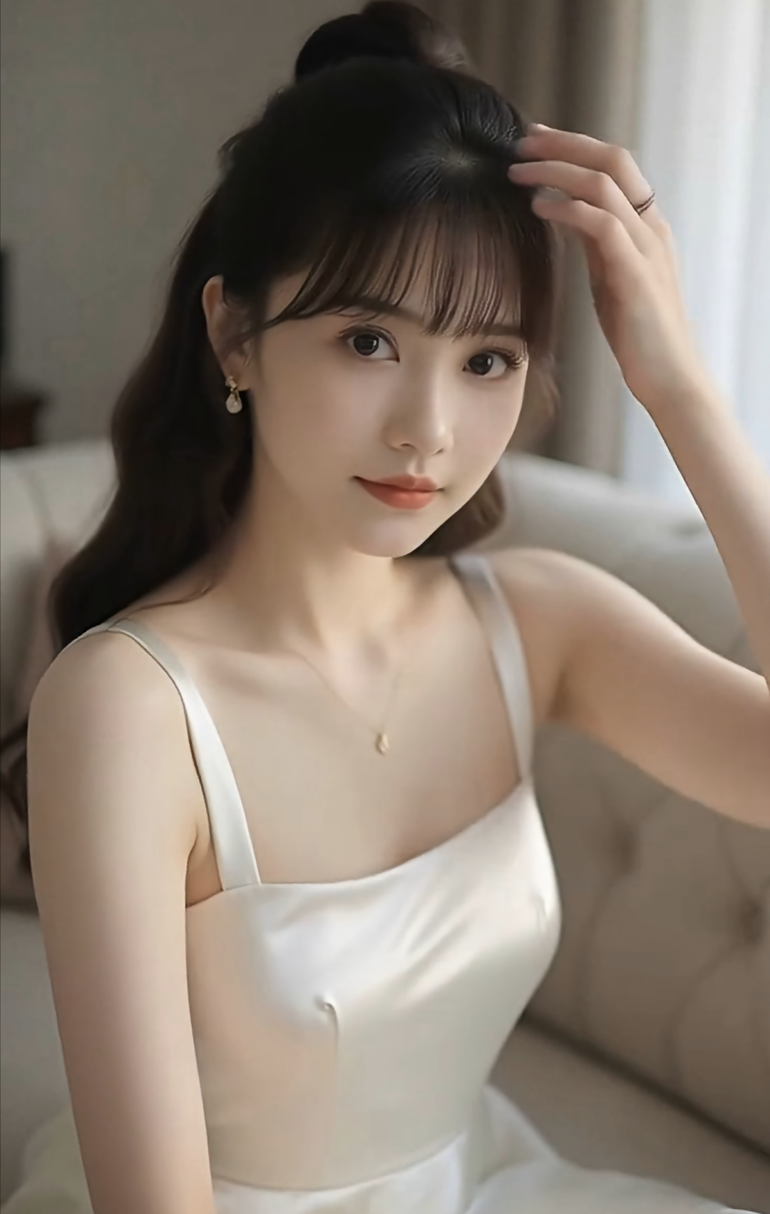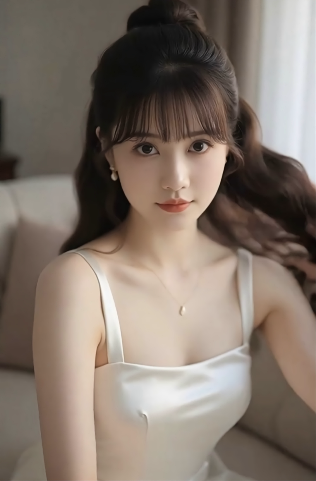 这条白色丝绸吊带裙真是夏天必备的好东西,面料丝滑有光泽,看起来特别高级。细细的肩带能很好地展示锁骨,简单的剪裁既能显身材又带着点随性的感觉。在家穿可以配件针织开衫,舒服又放松。出门约会的话,戴条项链、穿双细带凉鞋就很好看。不过丝绸比较娇气,要注意别碰到香水、防晒霜这些东西,洗的时候要用专门的丝毛洗涤剂,冷水手洗。穿的时候里面最好穿肤色无痕内搭,避免透色,收纳时记得挂起来,防止皱褶,出门可以带个小瓶的去静电喷雾,防止裙子贴腿。微胖的女生可以加件同色系的薄纱罩衫遮手臂,整体搭配淡色系的配饰会更显气质。