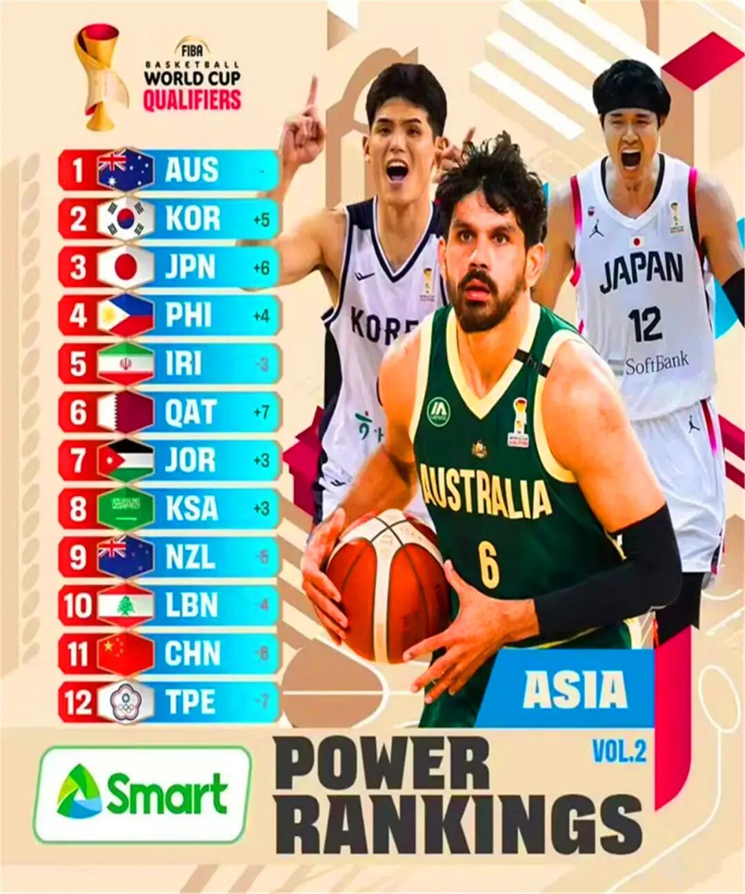 近日,国际篮联官方公布了第二期世界杯预选赛亚大赛区各支球队的排名,其中澳大利亚男篮依旧稳坐榜一,而韩国男篮和日本分别排在了第二名和第三名。值得一提的是,在上一期的世界杯预选赛亚大赛区各支球队排名当中,韩国男篮和日本男篮分别处于第七名和第九名。如今仅仅过去数月时间,韩国男篮和日本男篮的排名就有了大幅度的提升。反观中国男篮,在最新一期的世界杯预选赛亚大赛区实力榜中,中国男篮跌至第十一名(倒数第二名),而中国台北男篮则是排在了第十二名。