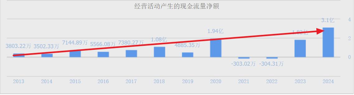 尤其值得警惕的是,2024年经营性现金流净额惊现-304万,创下近十年新低,现金流压力凸显。