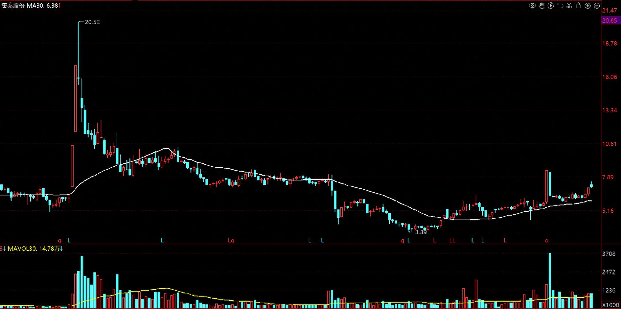 二级市场的表现同样惨烈。 2021年,集泰股份股价曾触及21.47元(前复权)的历史巅峰,市值接近80亿元。但随后便开启了漫长的下跌通道,至2024年最低探至3元附近,较高点缩水幅度达惊人的85%,目前总市值仅徘徊在20亿元左右,不足高峰期的四分之一。技术层面看,虽然经历了暴跌,但近期股价在3元区域反复震荡,成交量出现明显萎缩,显示空头动能可能减弱,初步显现构筑底部平台的迹象,技术性修复的动能在逐步积累中。