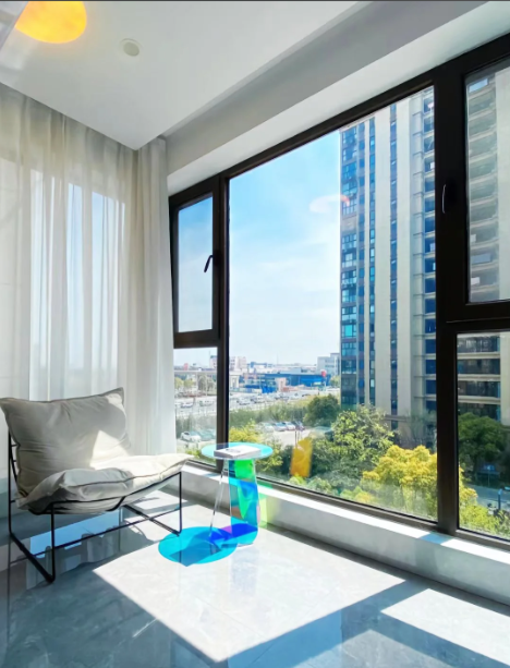 更难得的是它懂杭州人对自然与质感的双重偏爱。不同于普通封窗可能带来的采光压抑,极窄边框与超白钢化玻璃的设计,最大限度留住了阳台的通透感,阳光肆意洒落,晾晒、养植都不受影响,既守住了自然光影,又解决了开放式阳台的清洁难题。面对高层风大、临街噪音的问题,隐藏式五金锁点与精密密封工艺,能在隔尘的同时削弱喧嚣,关上窗便将市井纷扰隔绝在外,只留室内静谧。定制化服务还能适配不同小区建筑风格,老房改造、新房装修都能融入家居格调,不破坏建筑外立面的和谐。
