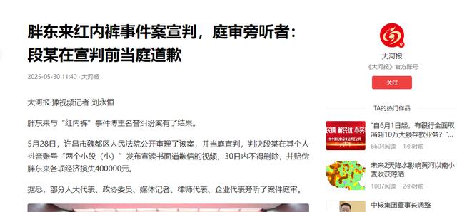 大河报 2025-05-30《胖东来红内裤事件案宣判,庭审旁听者:段某在宣判前当庭道歉》