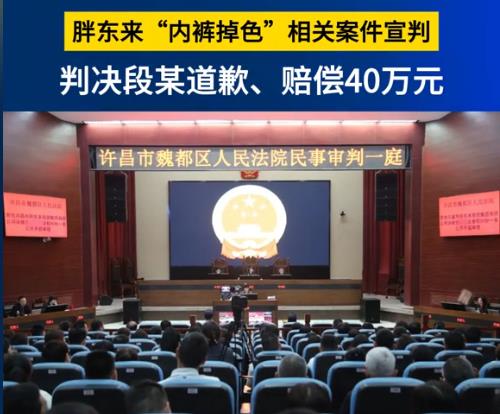 法院审理该案后当庭宣判,判决当事人段某在自己的抖音账号发布宣读书面道歉信的视频,30日内不得删除,并赔偿胖东来各项经济损失400000元。
