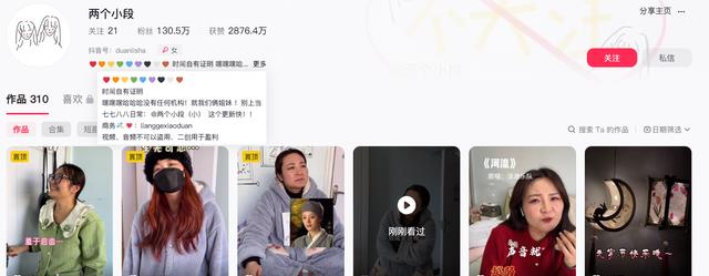 目前,“两个小段”账号的最新视频发布时间是在3月20号,而“两个小段(小)”账号最新发布视频是在3月31号。