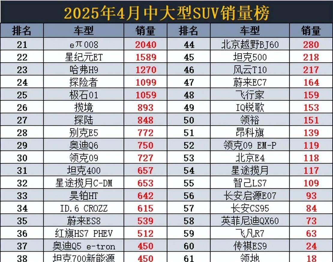 再来看一些销量低迷的车型,市场竞争的残酷显而易见。一些传统大型SUV如福特探险者、丰田普拉多等虽然依然具有一定的品牌情怀,但在销量上的表现却大幅下滑。探险者的销量仅800多辆,而普拉多经过多年打磨而来的稳固地位也开始受到撼动,竟然未能进入更高的榜单。这一切都暗示着,未来的市场将更加倾向于能够快速响应消费者需求与偏车型。新兴品牌在技术不断迭代升级的情况下,正在用它们的魅力吸引着更多的买家。
