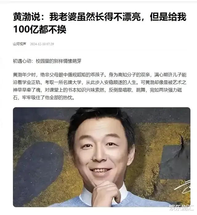 黄渤成为了影帝,有记者问黄渤:会不会换老婆?他听完后丝毫没有考虑说:我老婆虽然长得不漂亮,但是给我100亿都不换!说实话,黄渤功成名就,小欧确实不漂亮,如果他想离婚与一等一的美女在一起相恋,组建家庭也是有这个实力。关键是,黄渤对小欧从一而终。