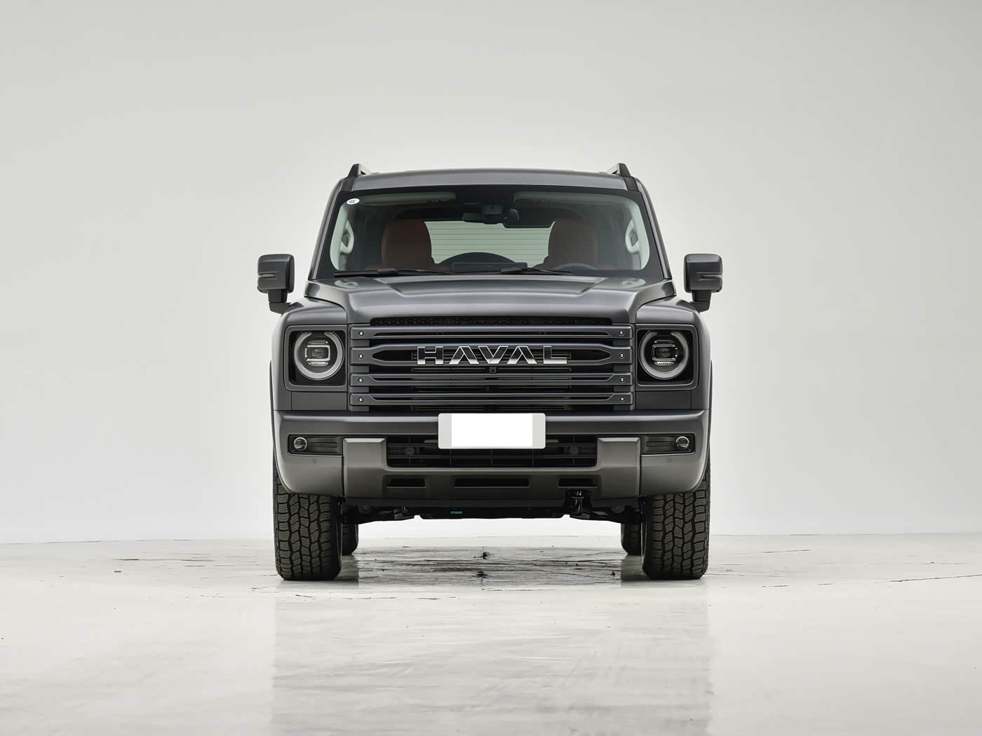 我们首先来看新车的外观设计方面,哈弗H9穿越版延续家族式"方盒子"造型,车头采用高大方正的设计语言。前脸进气格栅由四条粗壮的横向镀铬饰条填充,中央硕大的"HAVAL"车标极具辨识度。圆形LED大灯组采用内圆外方设计,内部集成日间行车灯与自适应远近光功能,既保留了经典越野元素,又融入现代科技感。前包围两侧预留LED前雾灯位置,搭配黑色防擦护板,在恶劣路况下能有效保护车体。