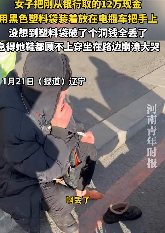 近日,河南青年时报一则新闻令人既心疼又无奈:辽宁一位女子从银行取出12万元现金后,仅用一只普通黑色塑料袋简单包裹,悬挂在电瓶车车把上。途中,塑料袋经车把摩擦与路面颠簸不堪重负,最终破损开裂,整笔钱款尽数散落路面,等她察觉折返时,钱款早已不见踪影。