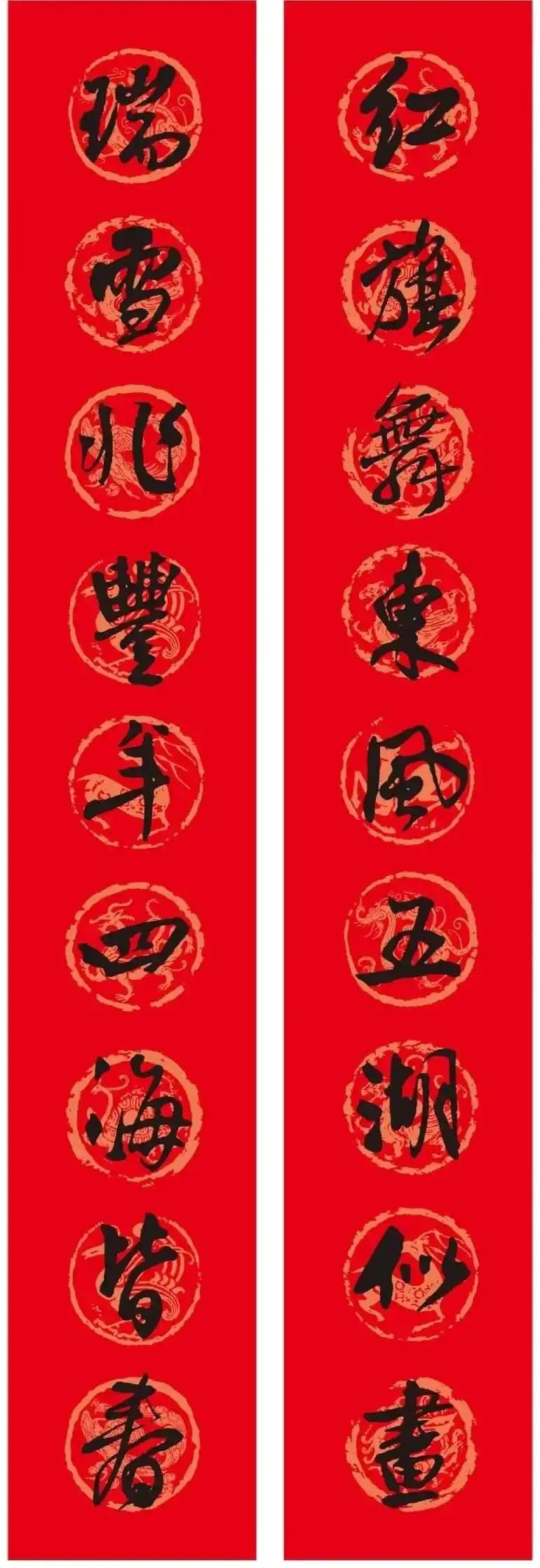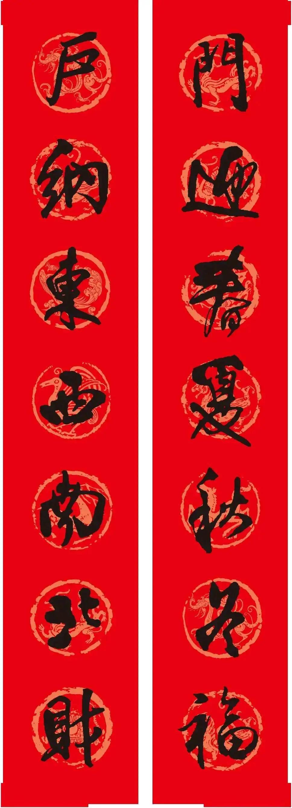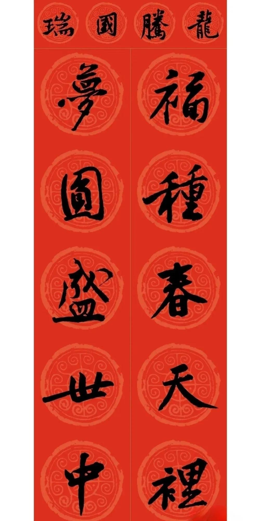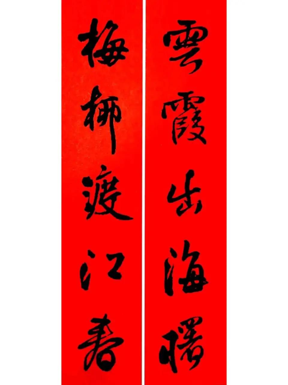 王铎、米芾、黄庭坚、苏轼,四大家行草雄强,2026马年集字春联以“龙马精神”为主线,挥翰呈祥,四体合一,墨彩飞动;联句“赤兔追风开盛景,金龙筑梦启新程”,行草错落,红纸映春,既可临池悟法,又可高悬门庭,一展晚明狂飙之姿,迎万里鹏程。