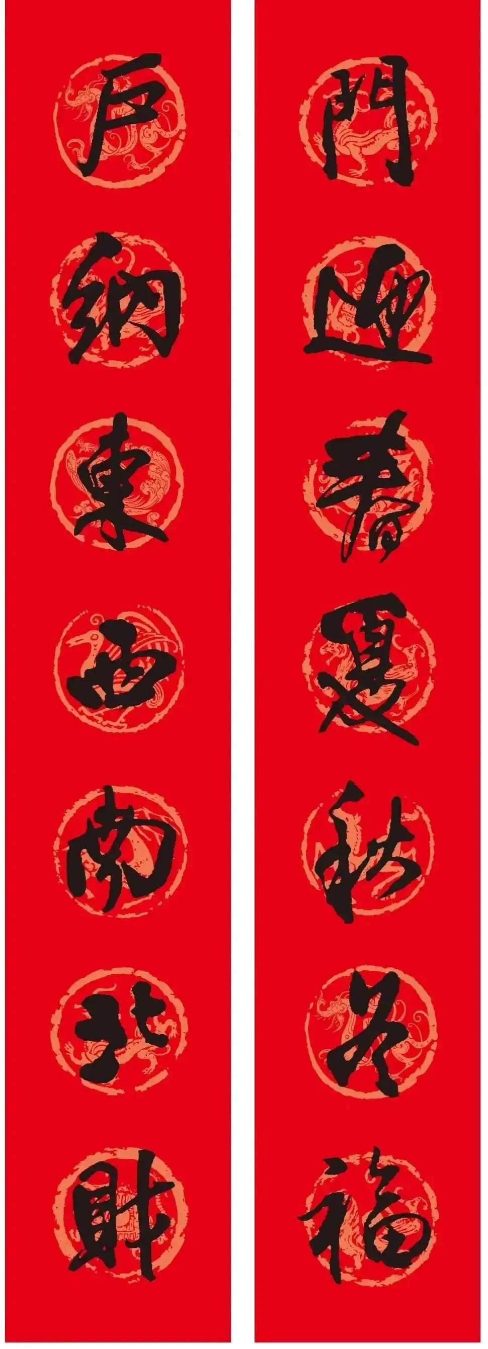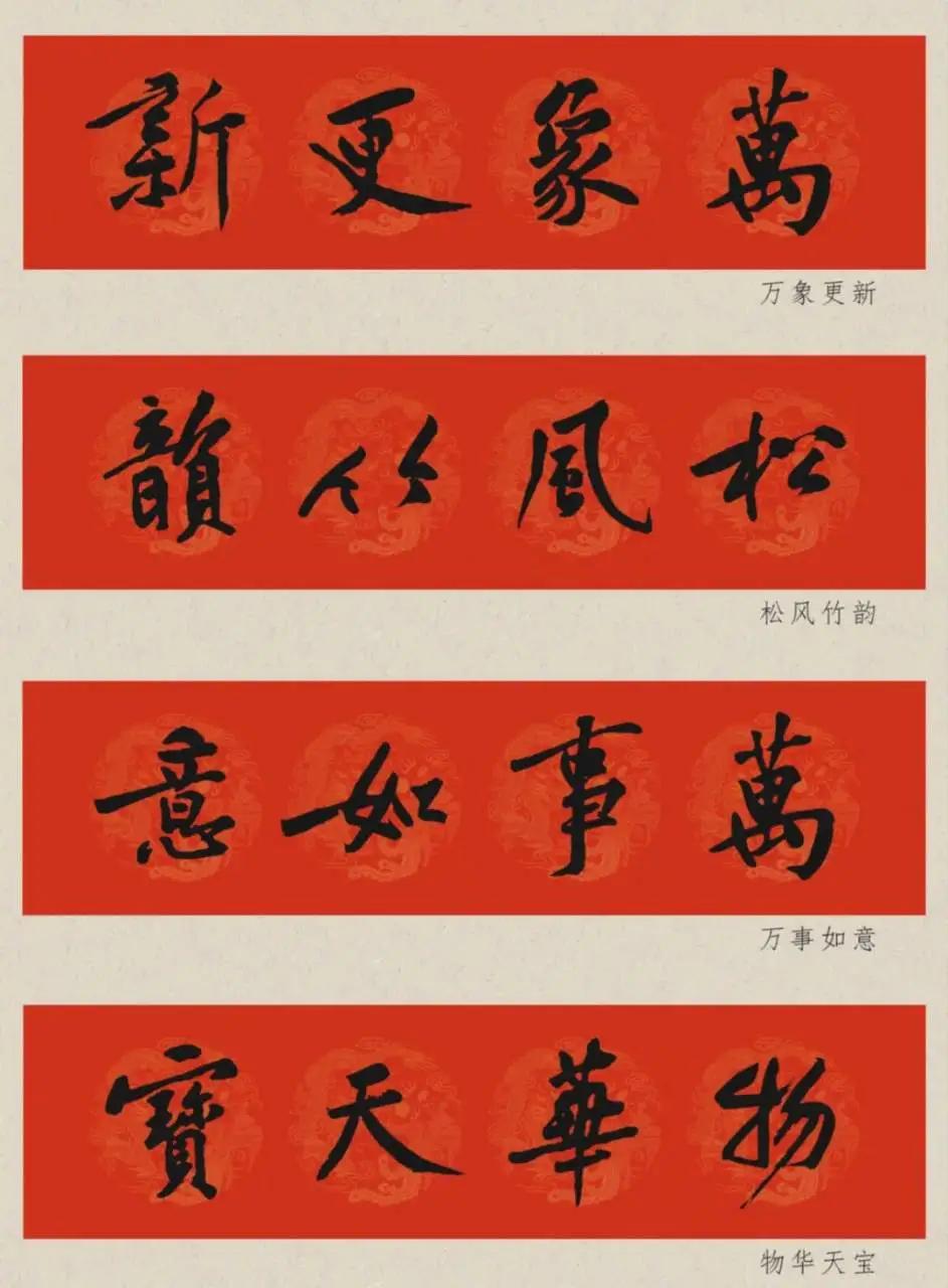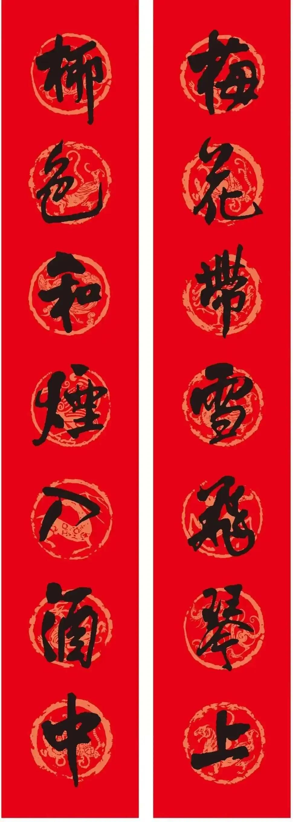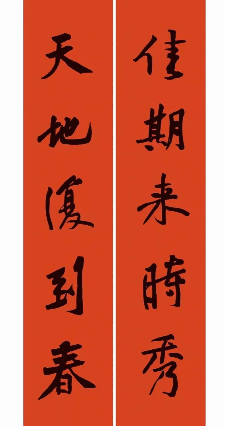 王铎、米芾、黄庭坚、苏轼,四大家行草雄强,2026马年集字春联以“龙马精神”为主线,挥翰呈祥,四体合一,墨彩飞动;联句“赤兔追风开盛景,金龙筑梦启新程”,行草错落,红纸映春,既可临池悟法,又可高悬门庭,一展晚明狂飙之姿,迎万里鹏程。