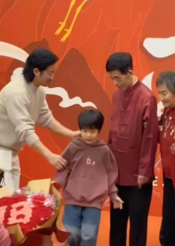 只见80岁的父亲,一头黑发,双眼炯炯有神,五官气质与吴京简直就是复制粘贴,看起来像60岁,但身材偏瘦,身穿一件大红色中式外套搭配黑色裤子,精神十分硬朗,见儿子吴京拿过话筒,老父亲表情有些紧张,但还是表达了对各位到场人员的感谢,以及对儿子吴京以儿媳谢楠忙前忙后的感谢。