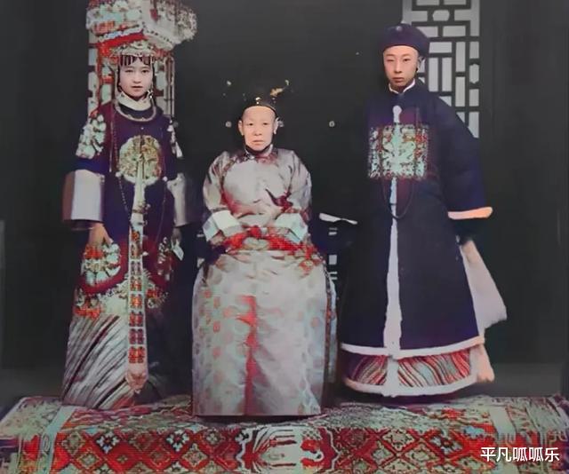 这张照片拍的是溥杰和唐怡莹结婚那天,日期是1924年1月12日。照片中间站着的是给他们赐婚的瑾妃。那时候,溥杰才17岁,唐怡莹已经20岁了,人们常说女大三岁抱金砖,但唐怡莹在民国那会儿,可是出了名的风流女子,被叫做民国第一渣女。