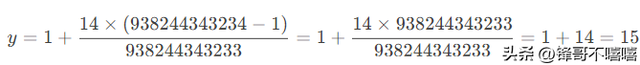 分子计算:14 x (x - 1) ,其中x−1 表示输入值相对于最小值的偏移量。输出范围:当 x=1 时,y=1(即1%);当 x=938244343234 时,y=15(即15%)。对于中间值,y 会均匀分布在1到15之间(例如,如果 x 是中间点,y大约是8)。示例计算示例1:当 x=1(输入最小值)时: