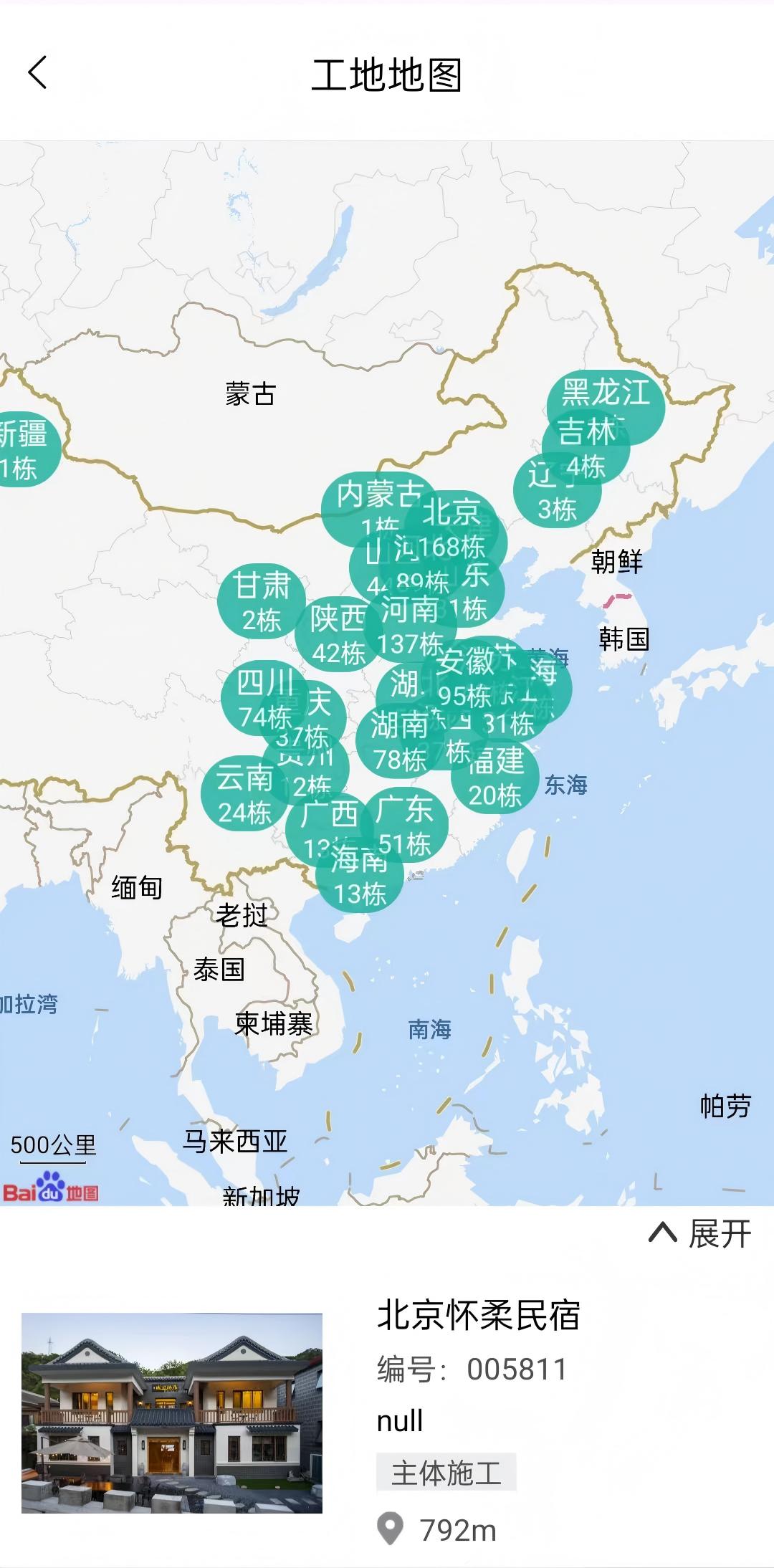 利用“工地地图”功能查看该施工队在全国的其他项目进展