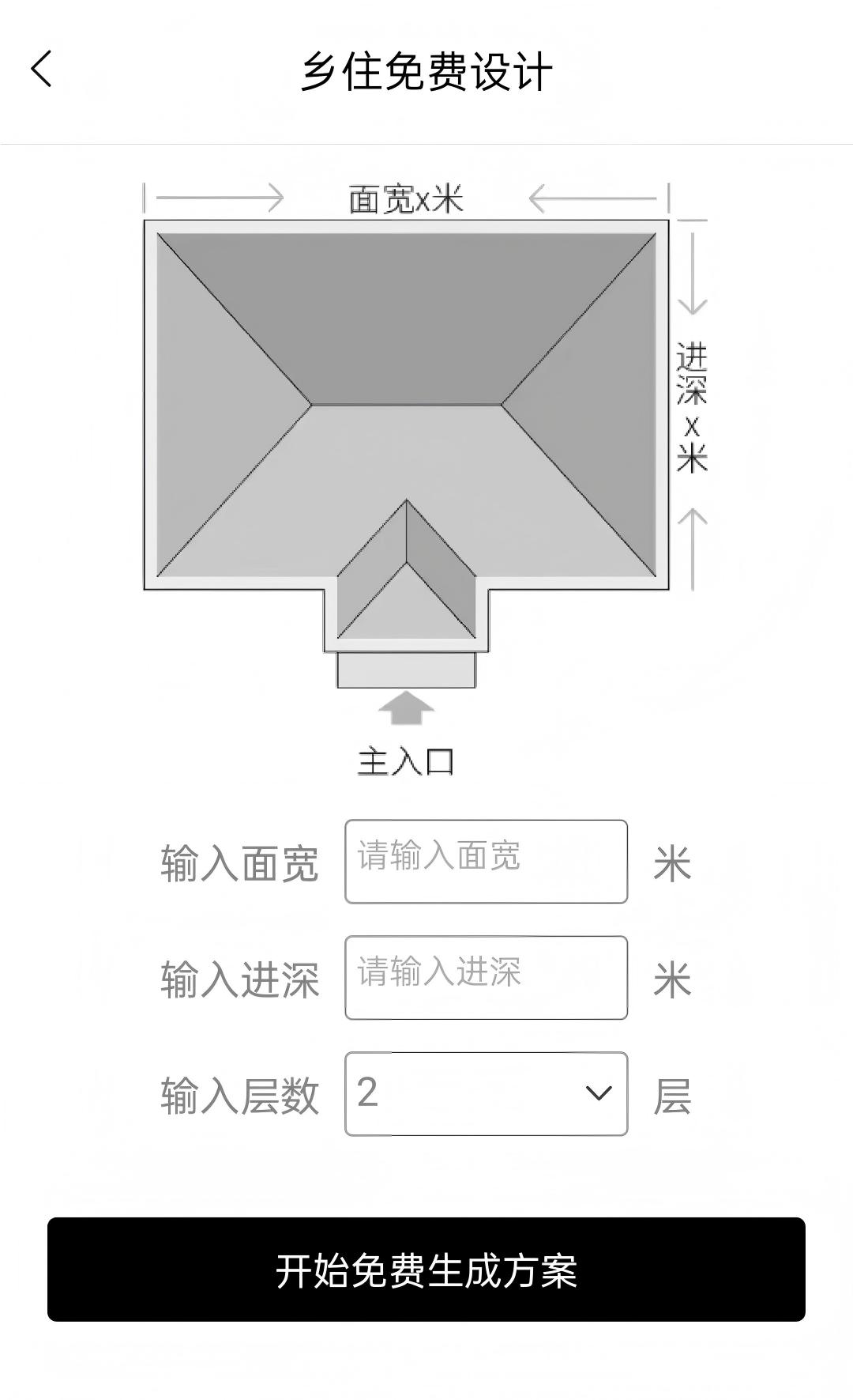 用户只需输入宅基地的面宽、进深、层数等基本信息,系统即可自动生成个性化设计方案