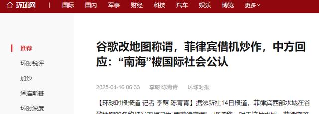 环球网——谷歌改地图称谓,菲律宾借机炒作,中方回应:“南海”被国际社会公认