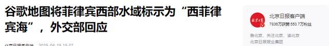北京日报——谷歌地图将菲律宾西部水域标示为“西菲律宾海”,外交部回应