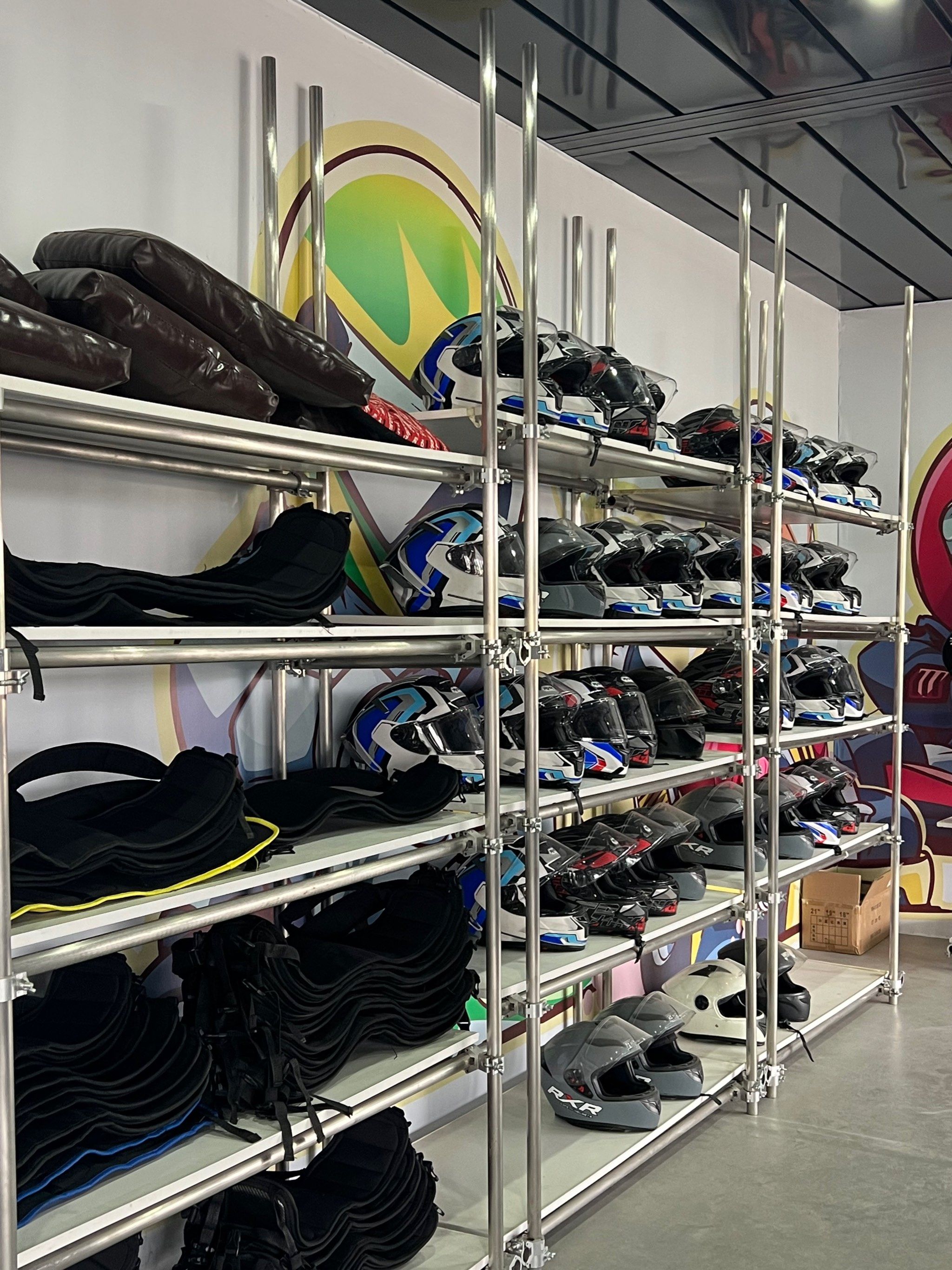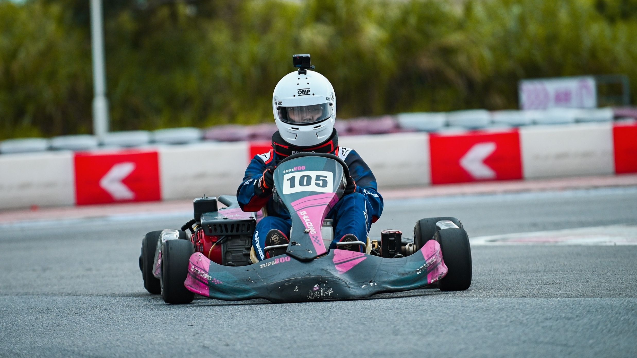 对了,卡丁车装备的核心作用是防护,分为必备装备和进阶装备,新手可根据需求逐步添置。其中头盔、手套和护颈三个装备缺一不可,不同年龄段头盔选择要求也有所不同。如果是15岁以下的车手,强制使用通过CMR认证的头盔;15岁及以上的车手可以选择非CMR认证的头盔或符合SNELL/FIA认证的赛车头盔。手套的核心要求是防滑、耐磨、贴合手掌,保护手部不被方向盘磨伤,同时提升操控精准度。建议优先选皮革+防滑橡胶组合,且掌心防滑纹路要深,不建议选择露指款。护颈能有效缓冲颈部压力,防止急刹或碰撞时颈部受伤,如果是新手选贴合颈部曲线,佩戴时不影响转头的海绵护颈即可;竞技玩家则可升级碳纤维护颈。
