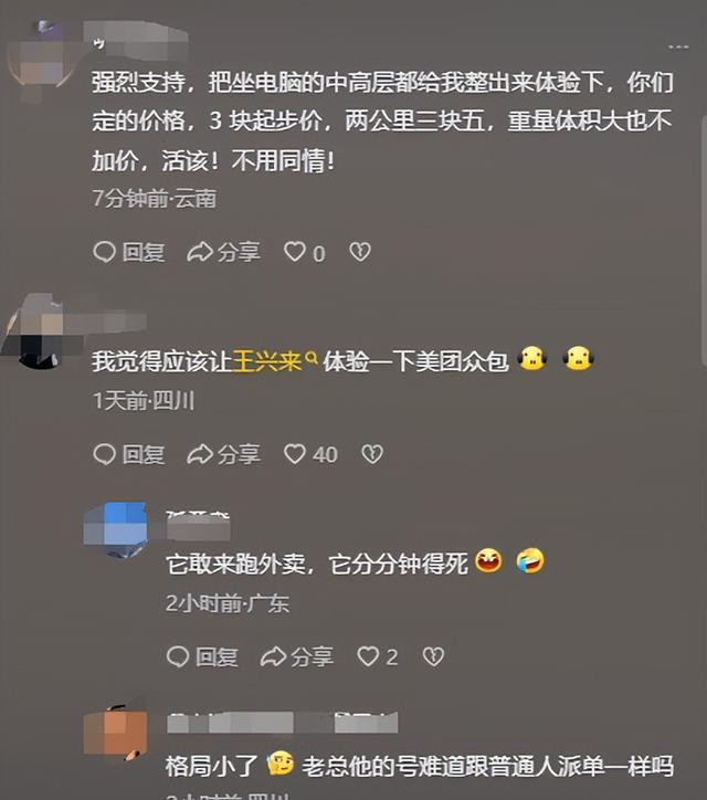许多网友都表示,这是什么破公司,管理层还得被逼着出来送外卖。