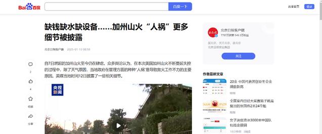信息来源:北京日报客户端2025-1-15缺钱缺水缺设备..….加州山火“人祸”更多细节被披露